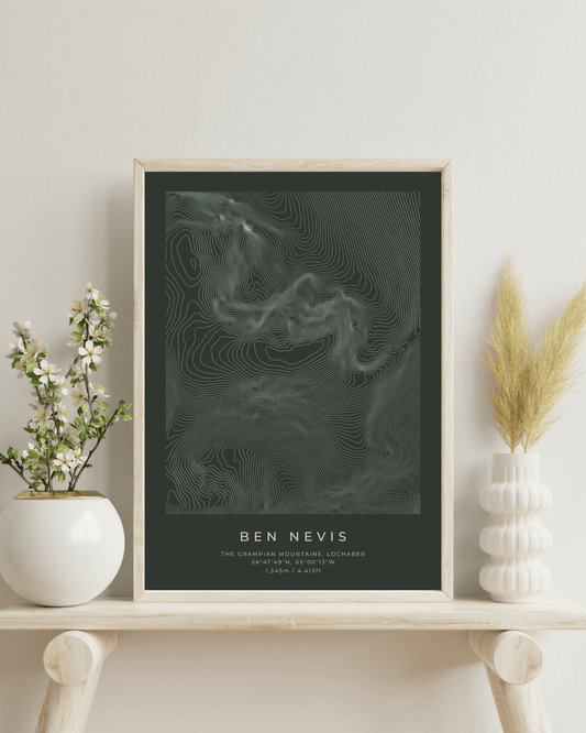 Ben Nevis - Contour Map Poster - Three Peaks Challenge