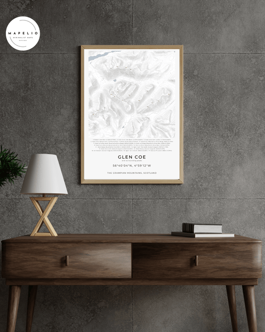 Glen Coe, Buachaille Etive Mòr & Surrounding peaks - Contour Map Print