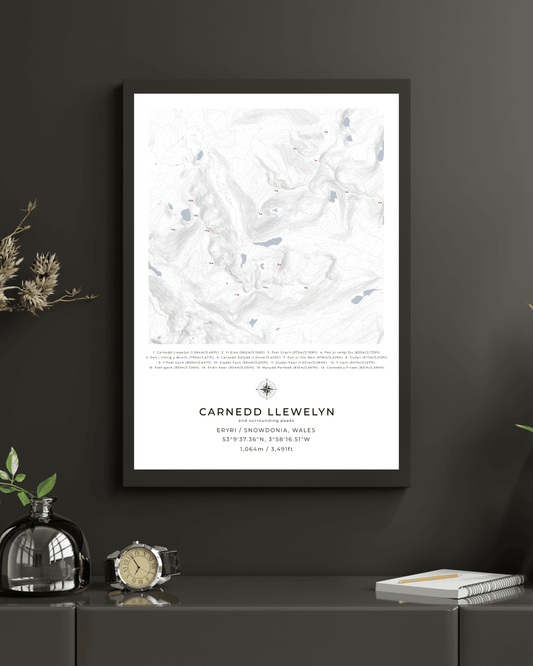 Carnedd Llewelyn & Surrounding peaks - Contour Map Print Poster