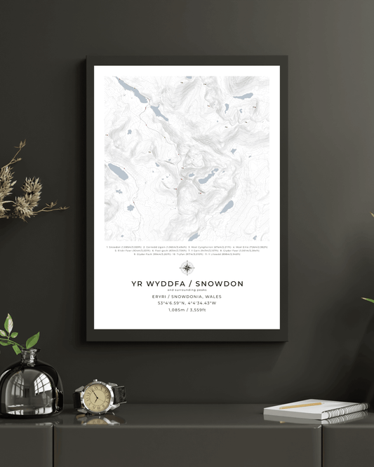 Yr Wyddfa / Snowdon & surrounding peaks - Contour Map Print