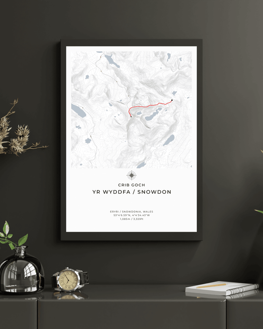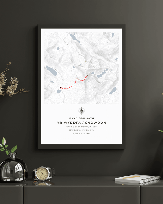 Snowdon - Rhyd Ddu Path Contour Map Poster