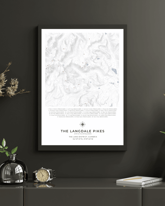 The Langdale Pikes & Surrounding peaks - Contour Map