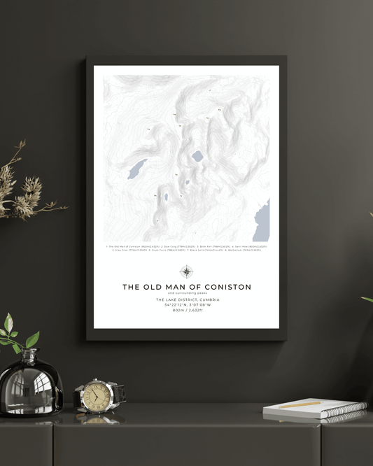 The Old Man of Coniston & Surrounding peaks - Contour Map