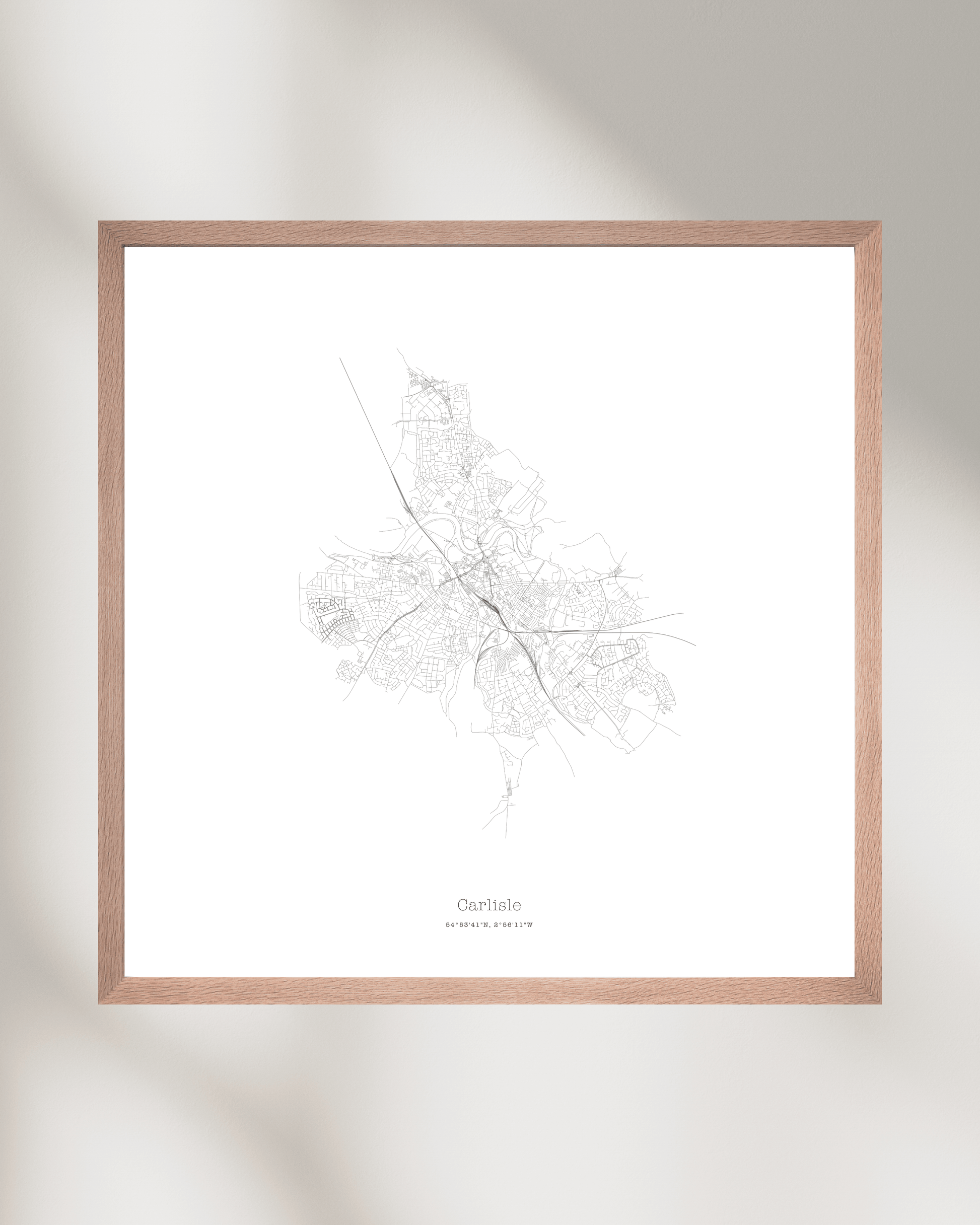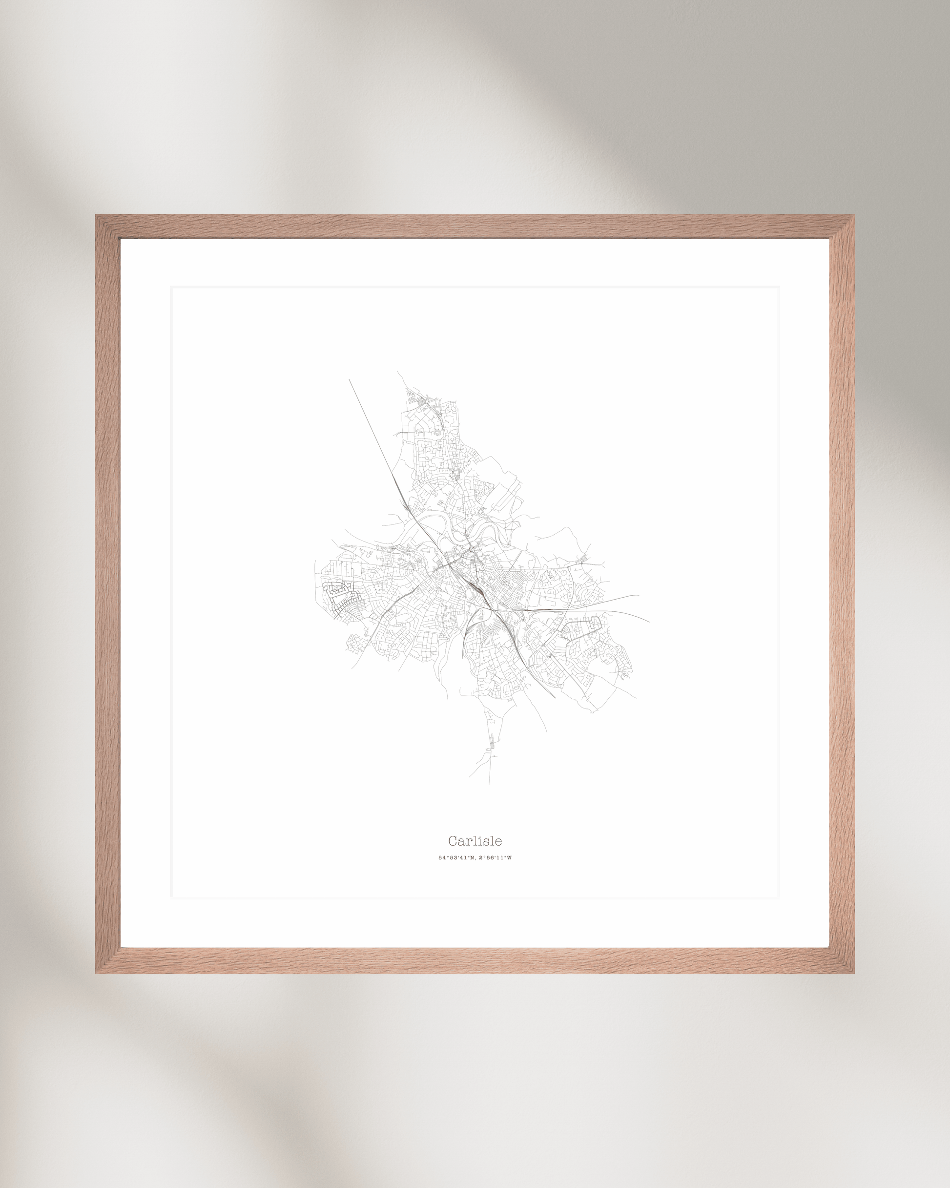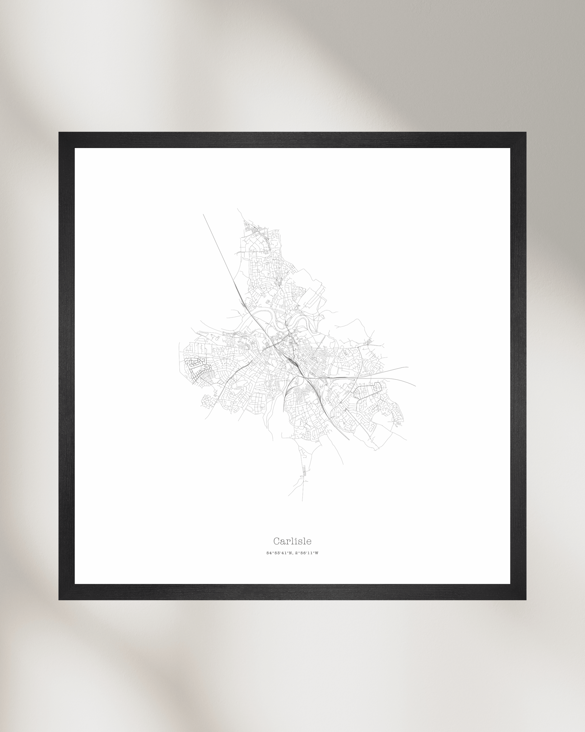 A highly detailed line map of Carlisle in stunning minimalist detail.