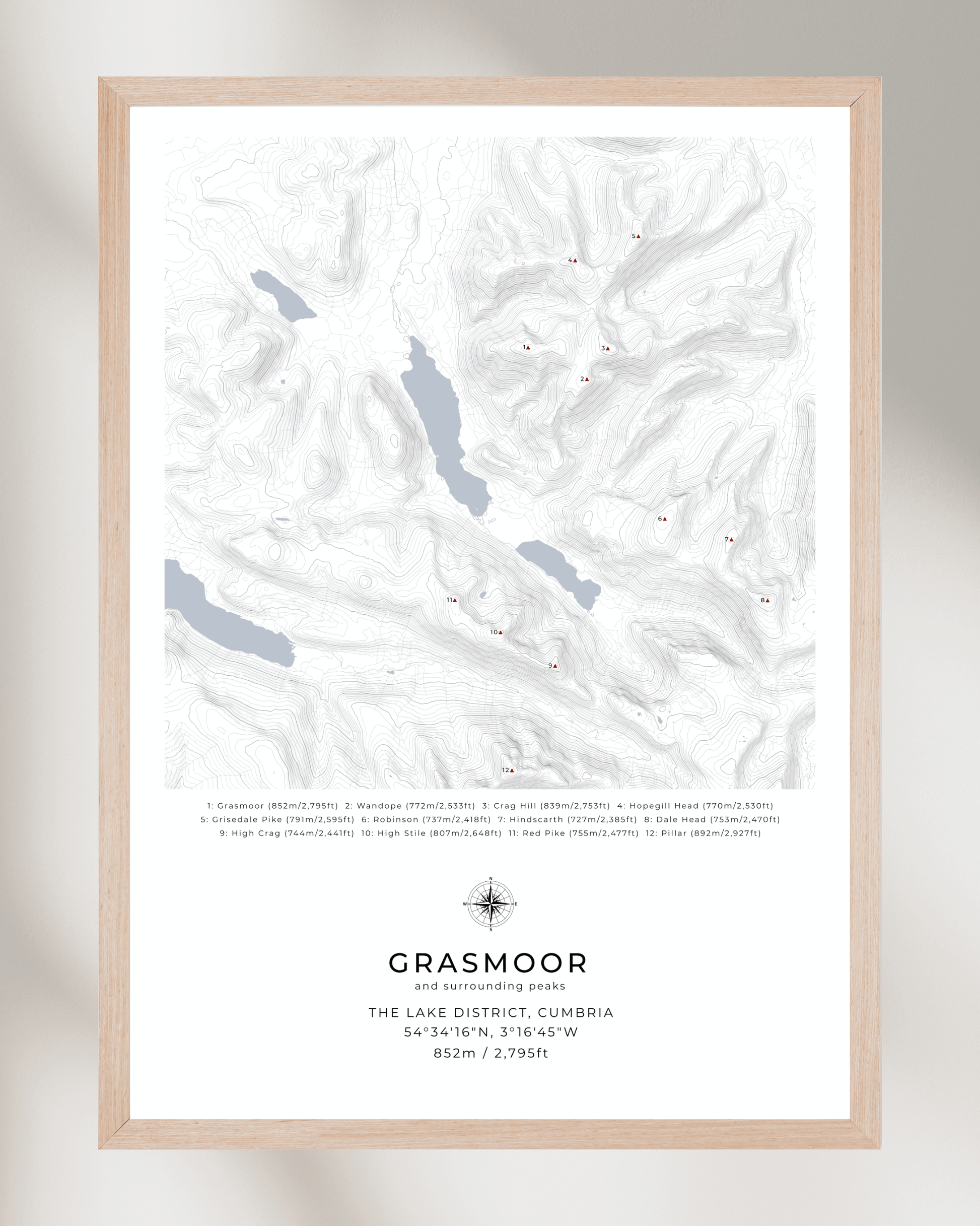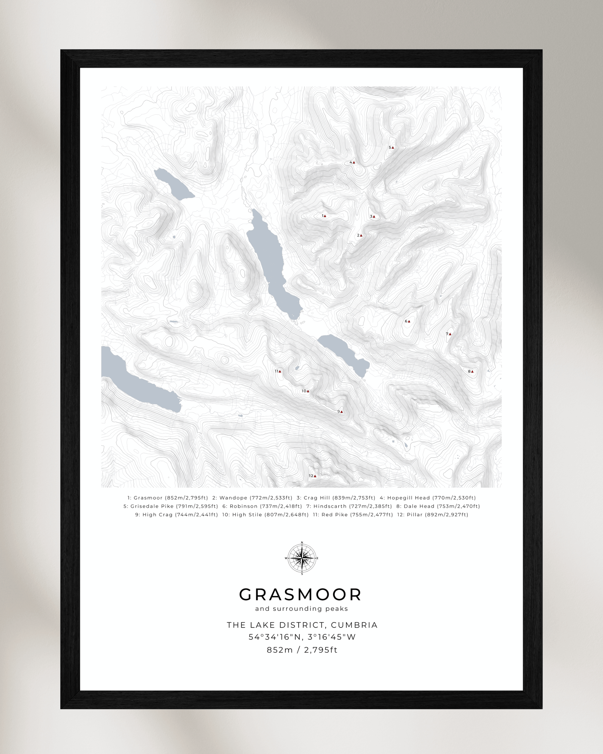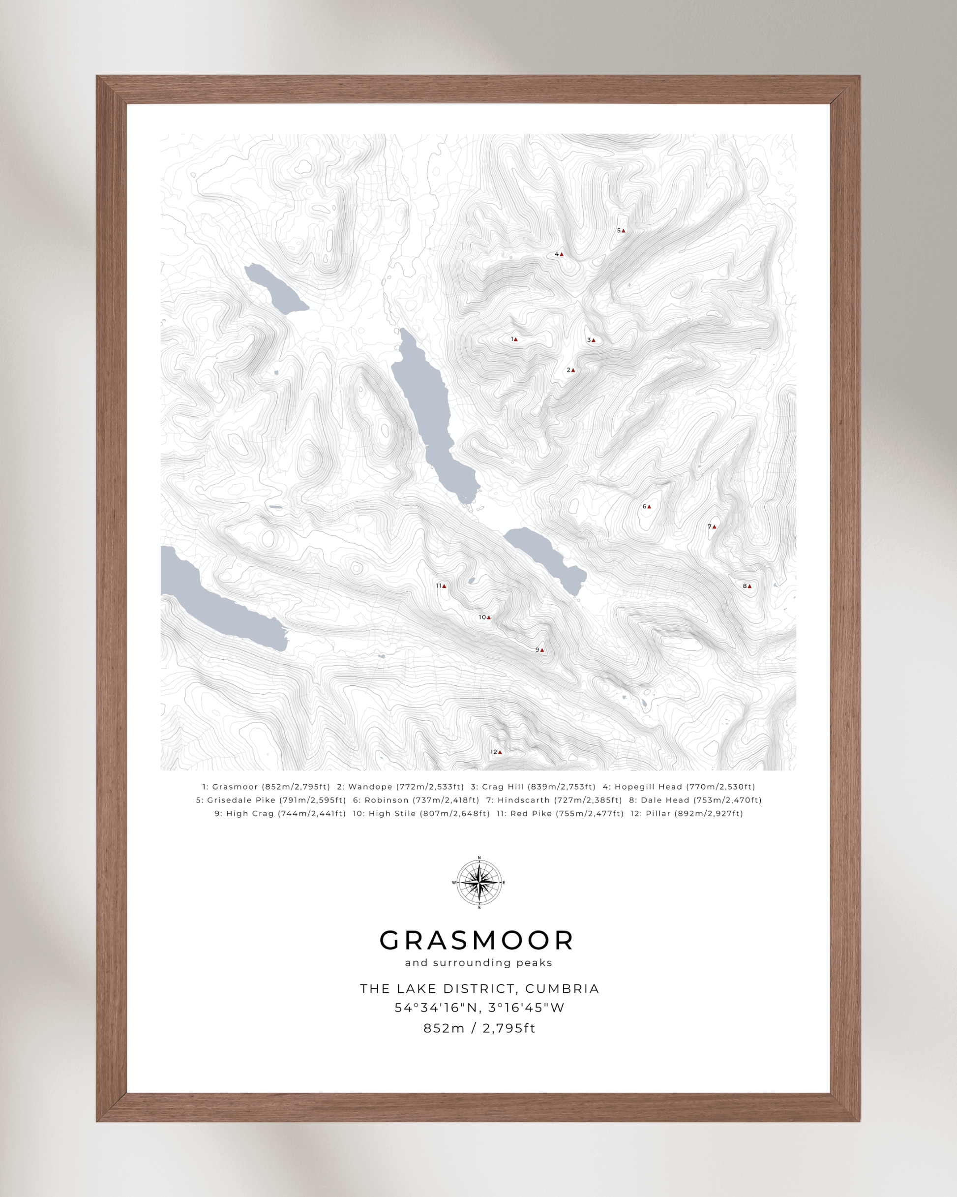 A beautiful contour map of Grasmoor and surrounding peaks, including: