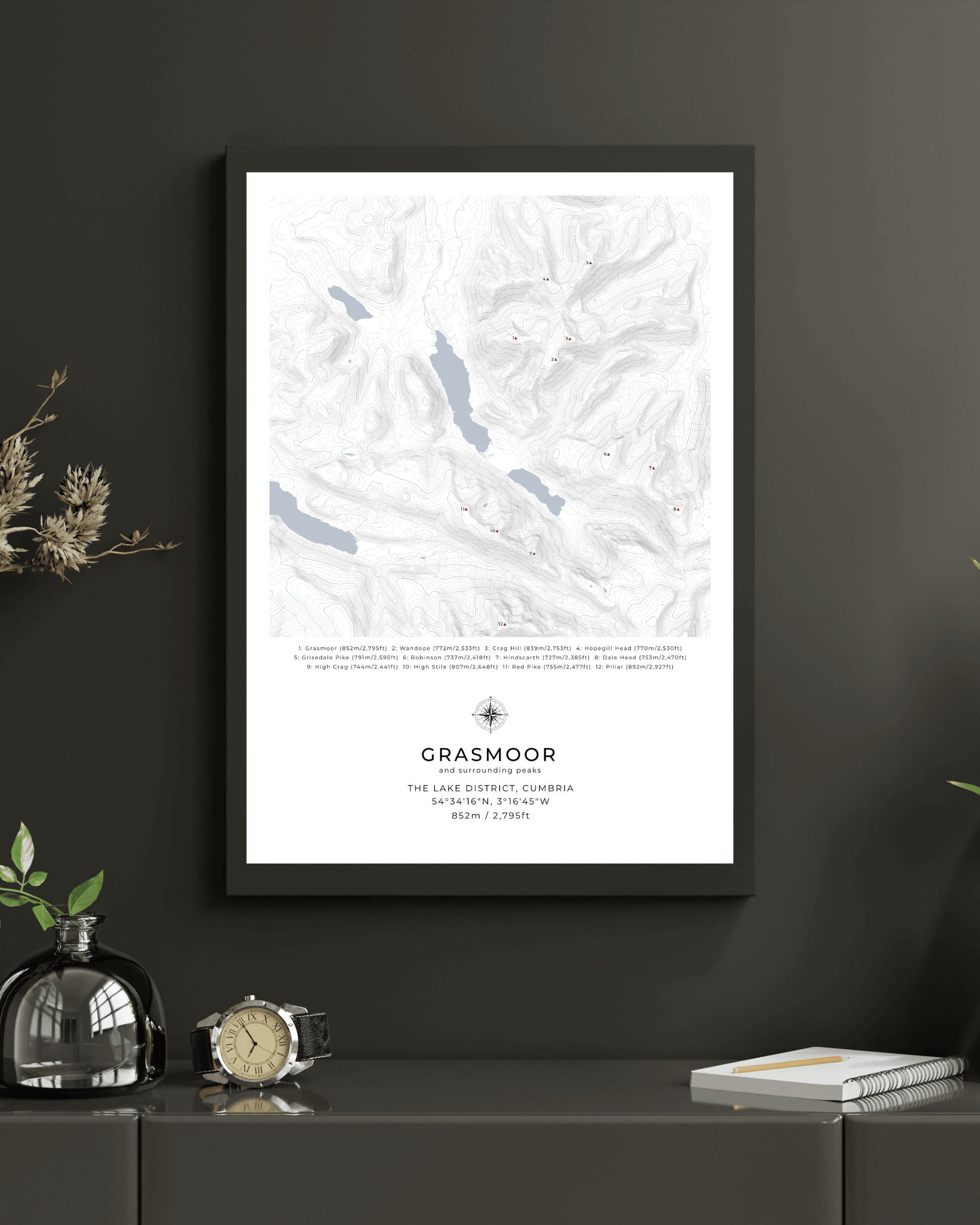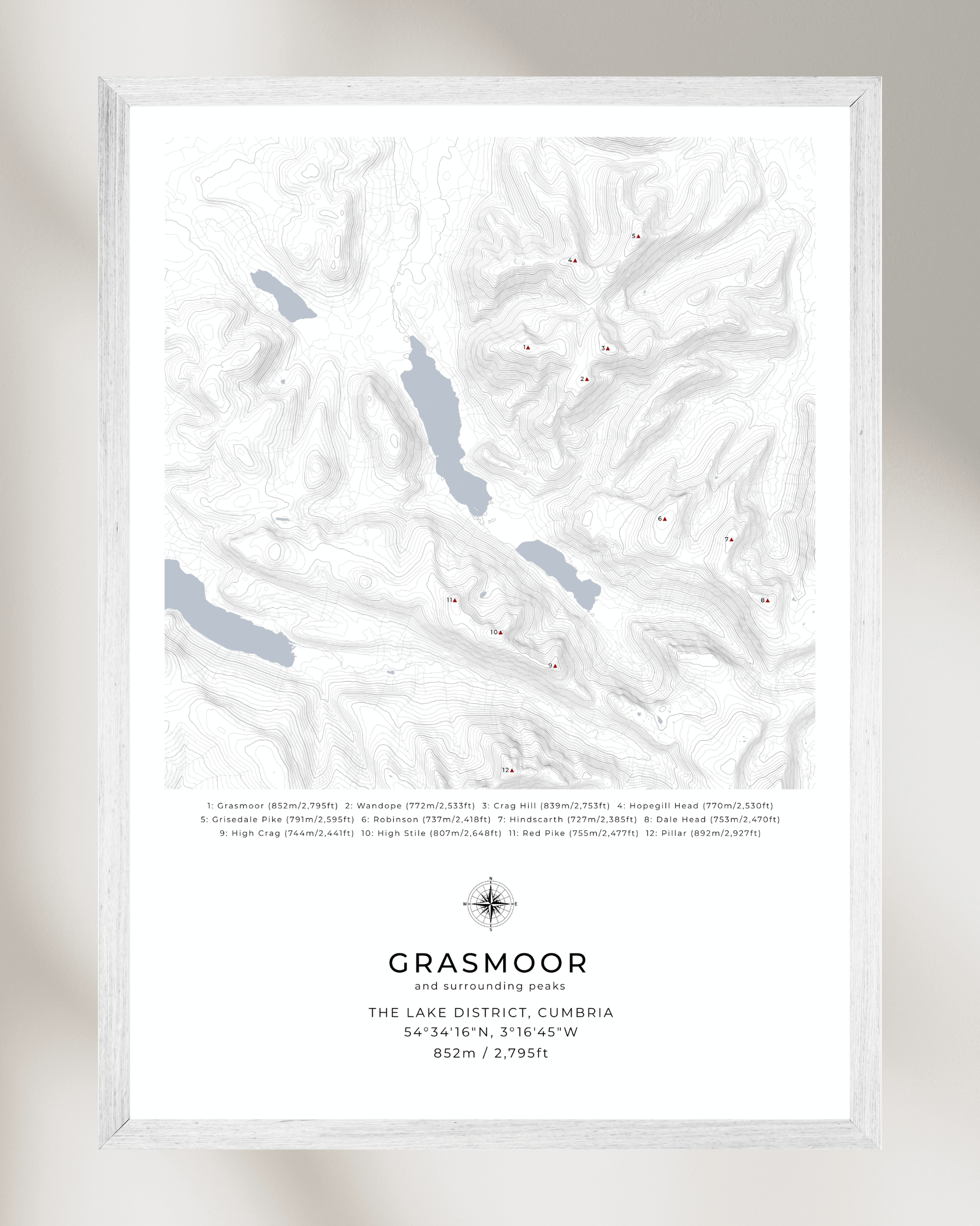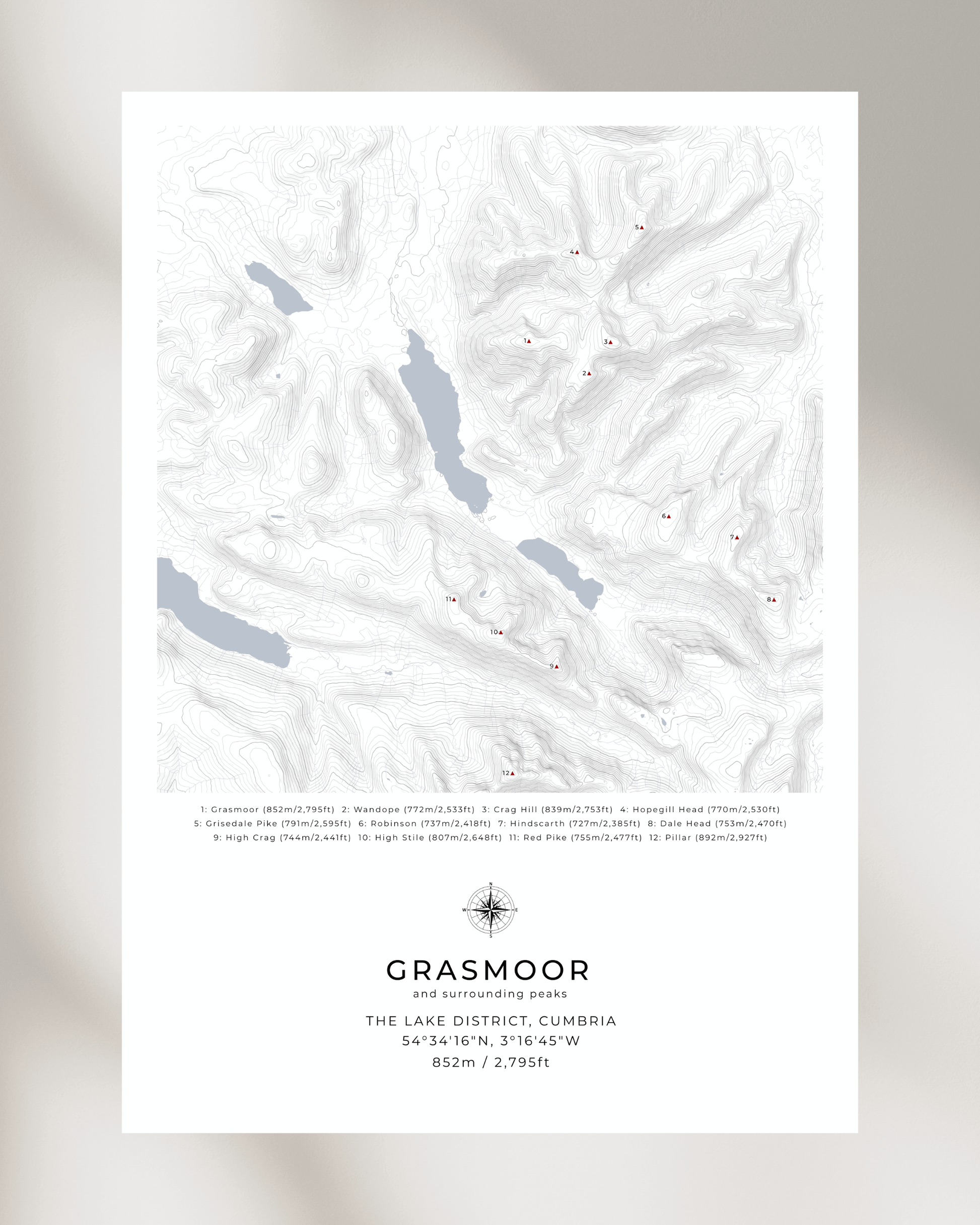 A beautiful contour map of Grasmoor and surrounding peaks, including: