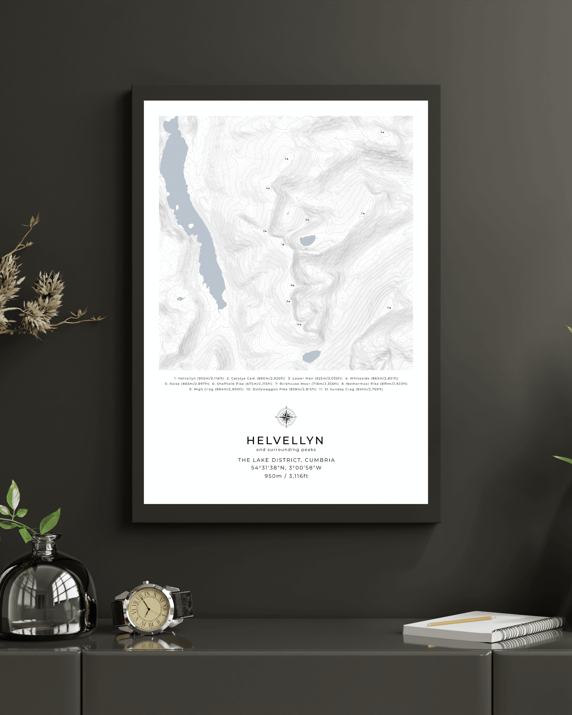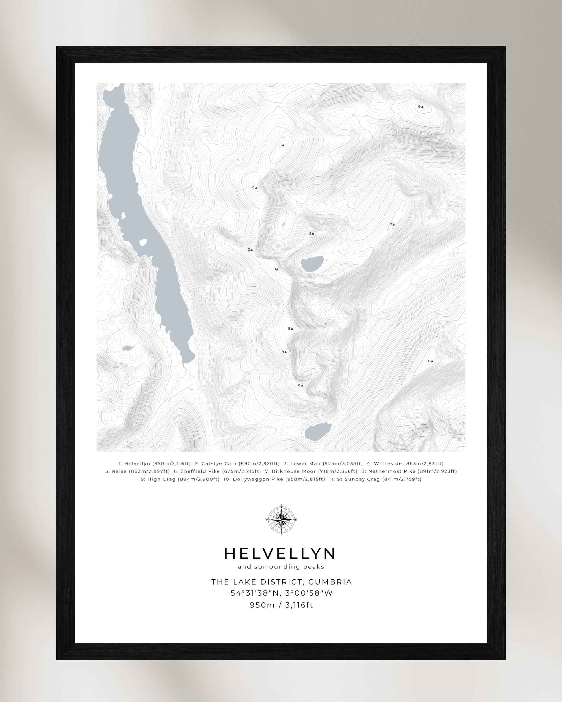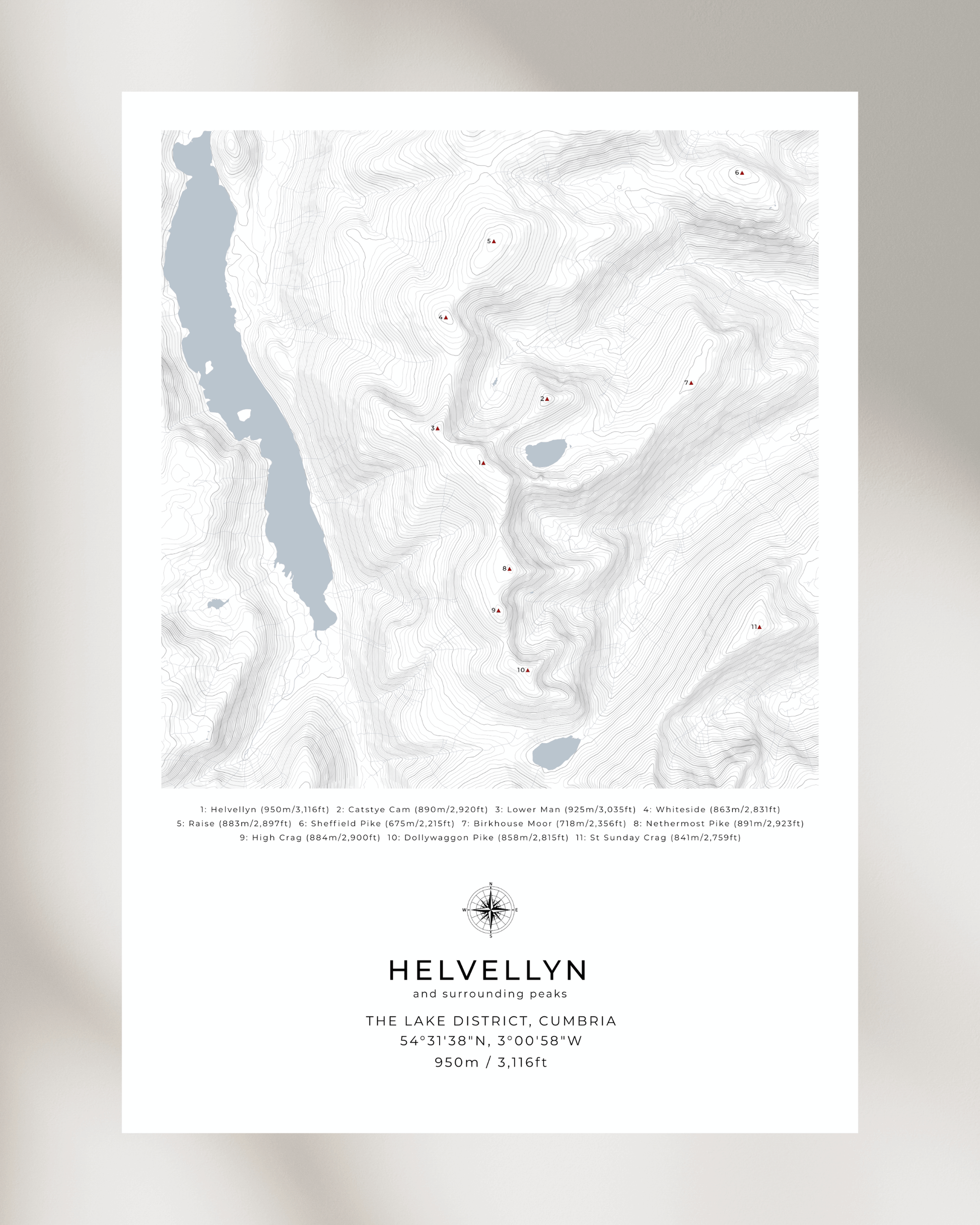 Whether you’ve climbed Helvellyn or simply love this part of the Lake District, this map offers a beautiful way to commemorate your connection to the mountain.