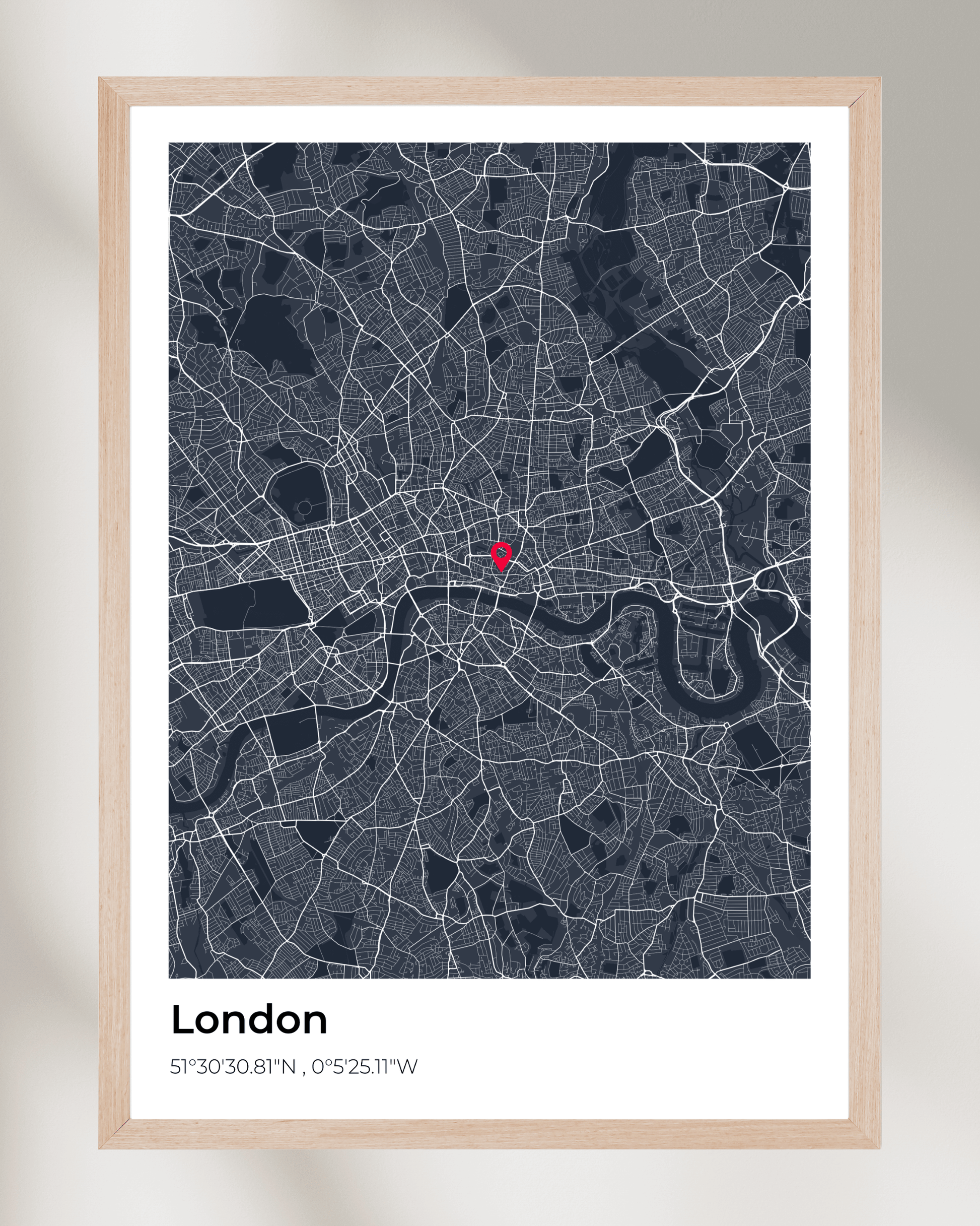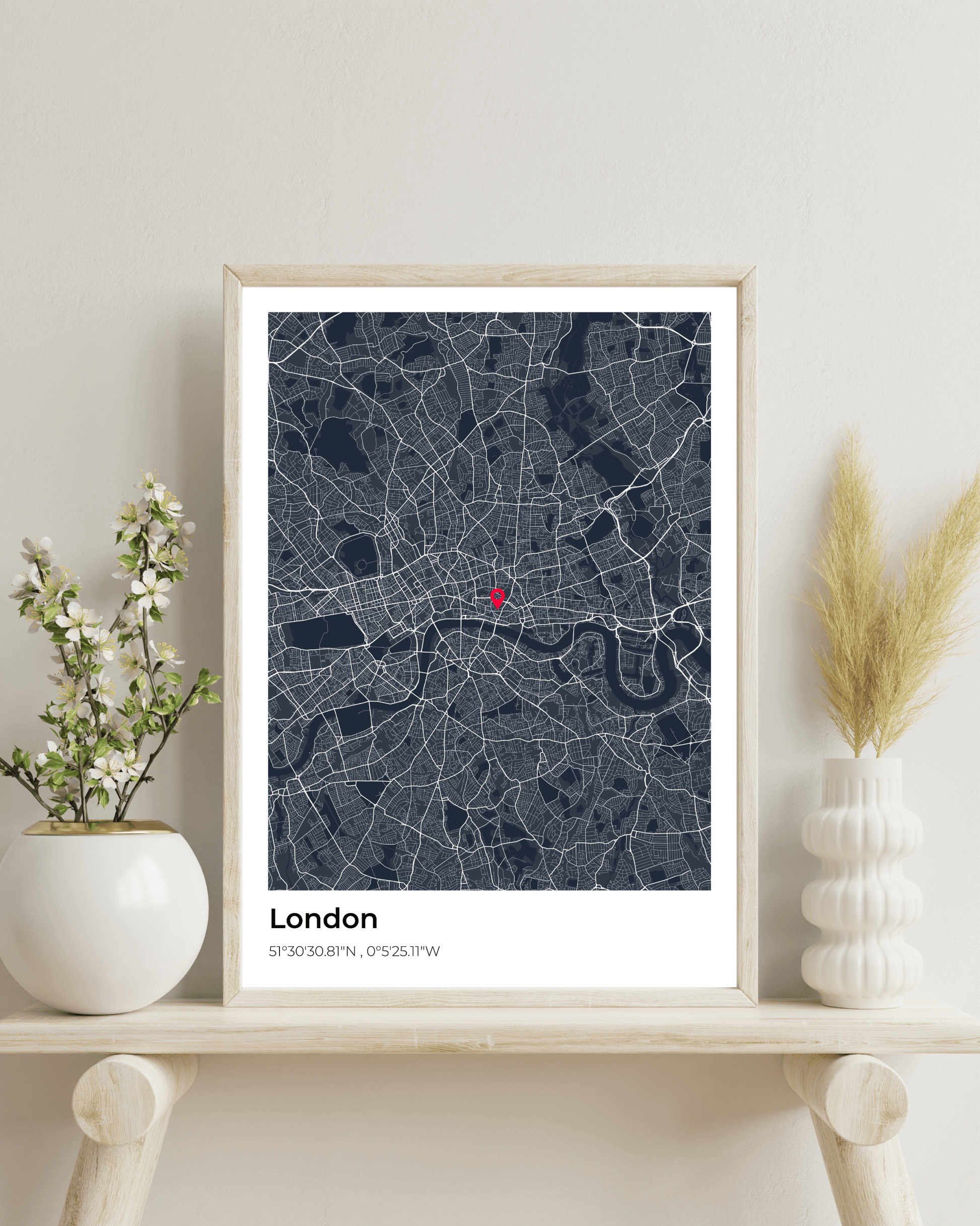Each of our personalised maps are available in a range of sizes, and you can also chose between framed and unframed.