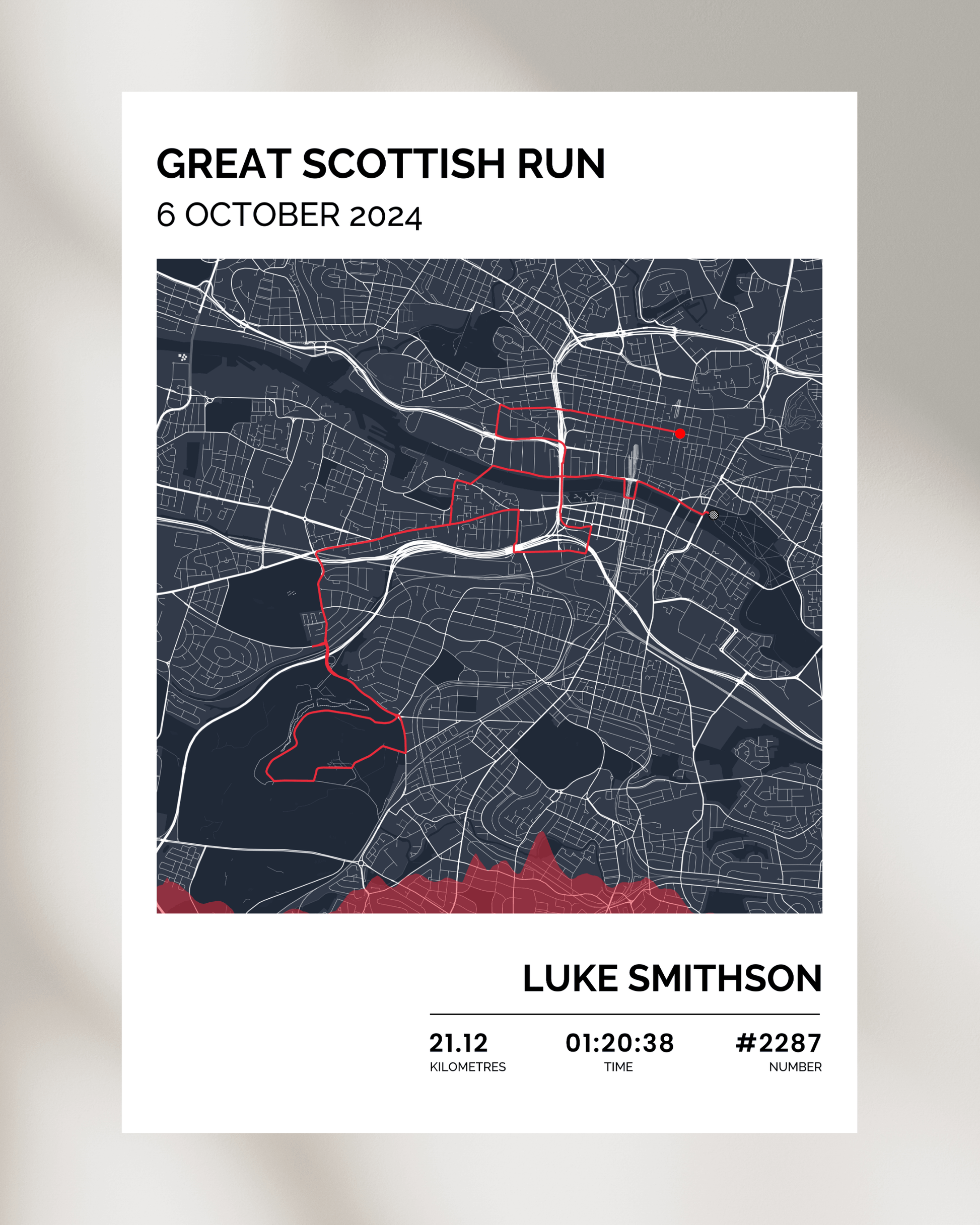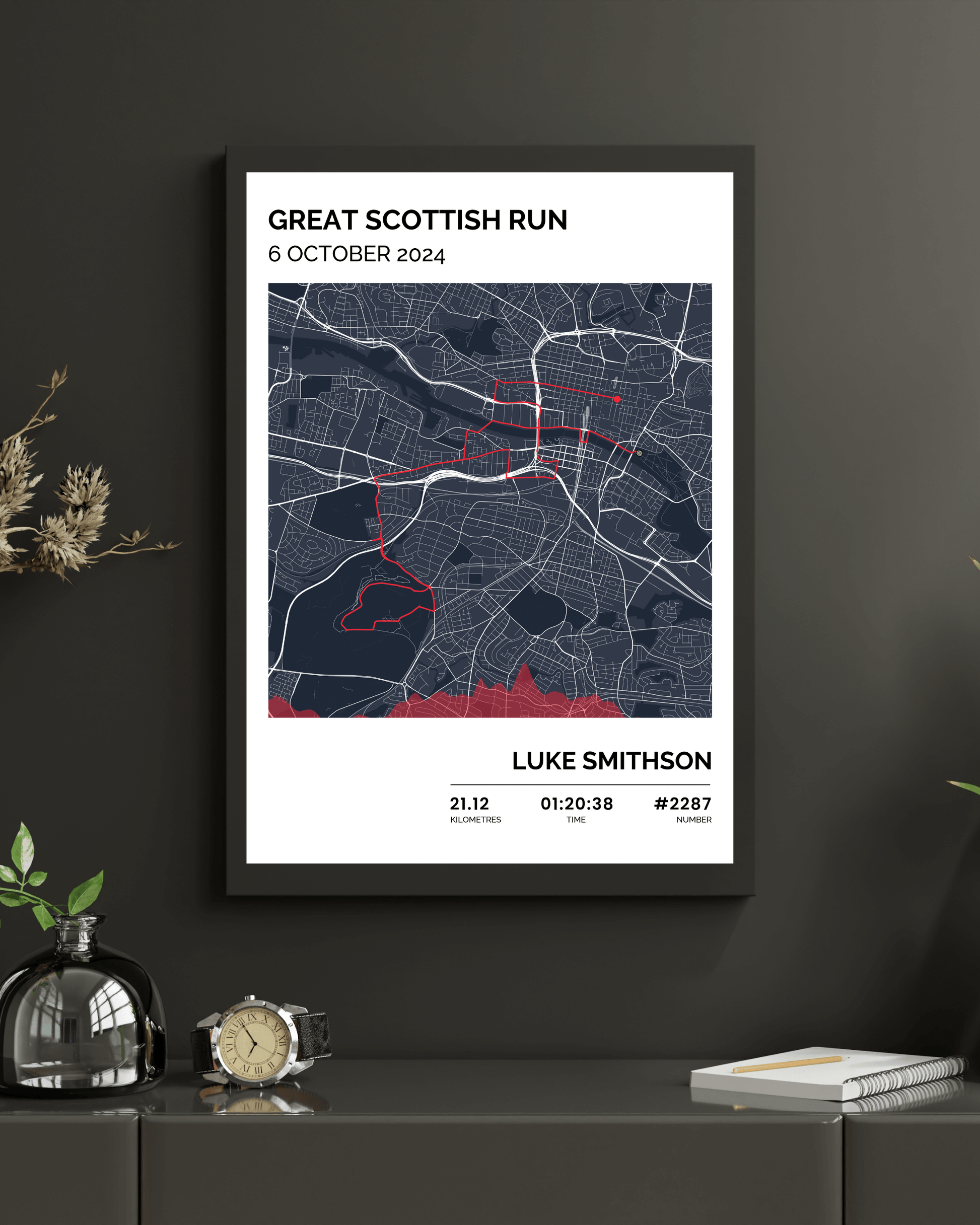 Personalise all details including name, date, time, distance and race number across a variety of different styles.