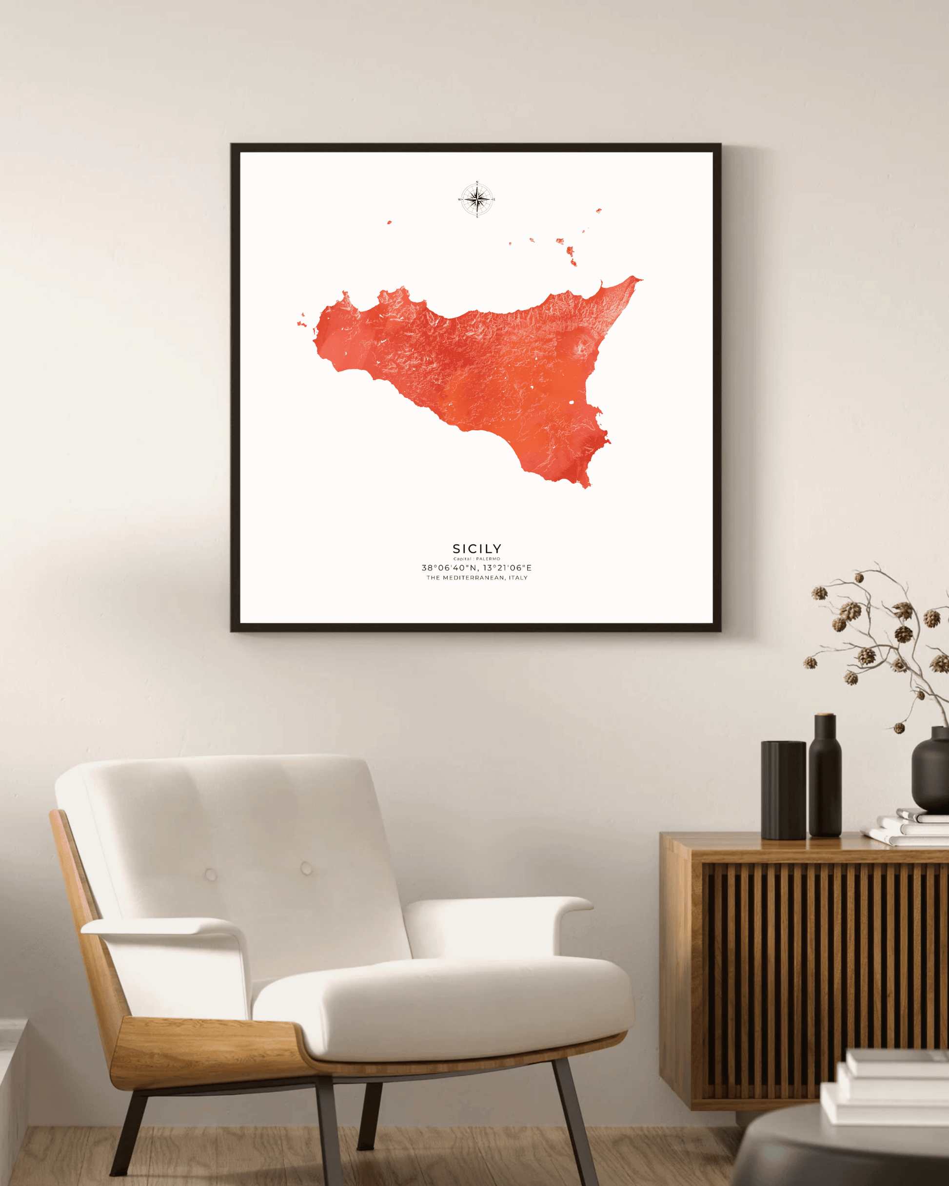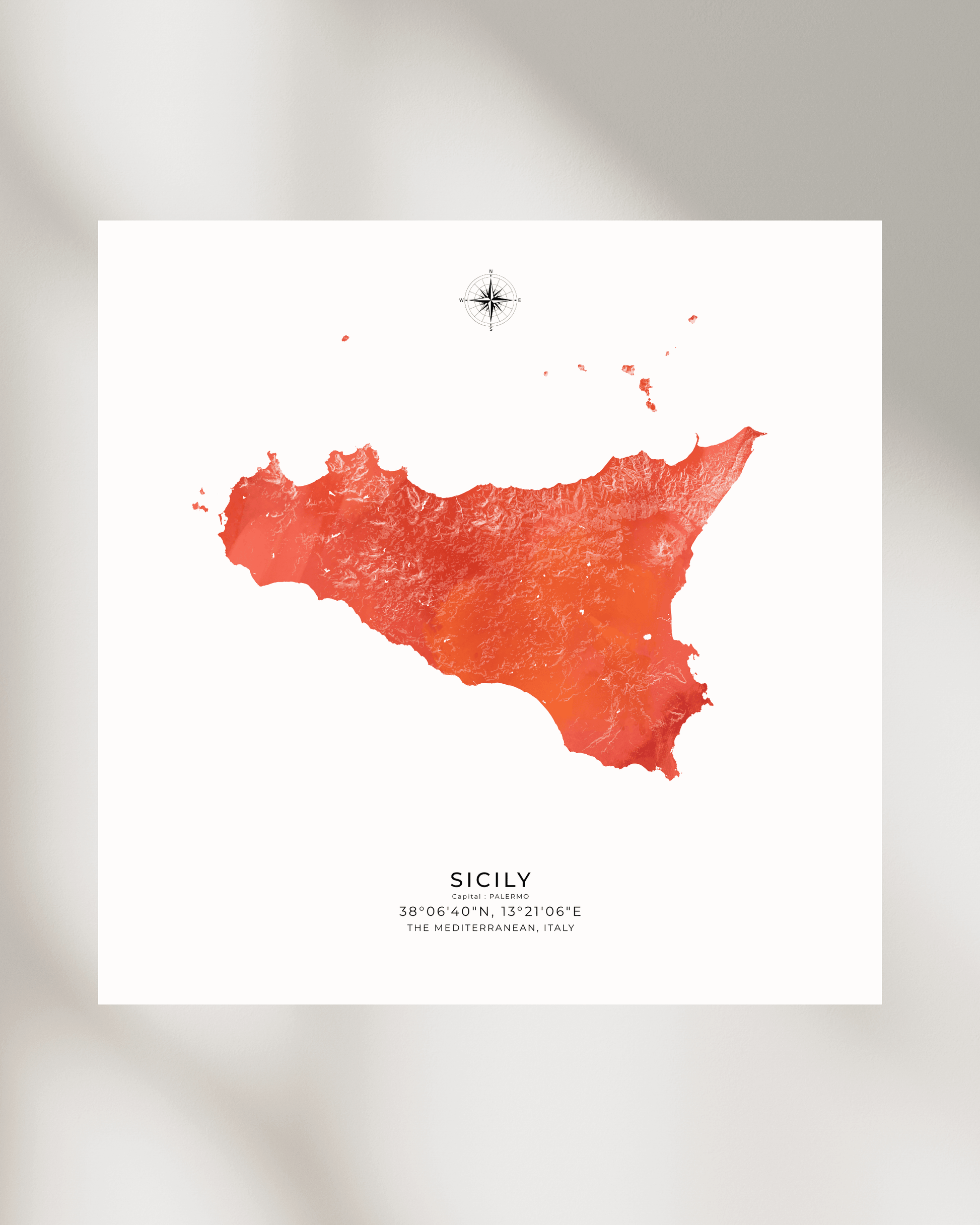 Expertly illustrated to reveal the island’s varied terrain, each elevation is subtly rendered to evoke depth, movement, and character. Printed on museum-grade archival paper, the map delivers crisp definition and refined texture - ideal for display in modern interiors, travel-inspired spaces, or as a meaningful gift for lovers of Sicily.