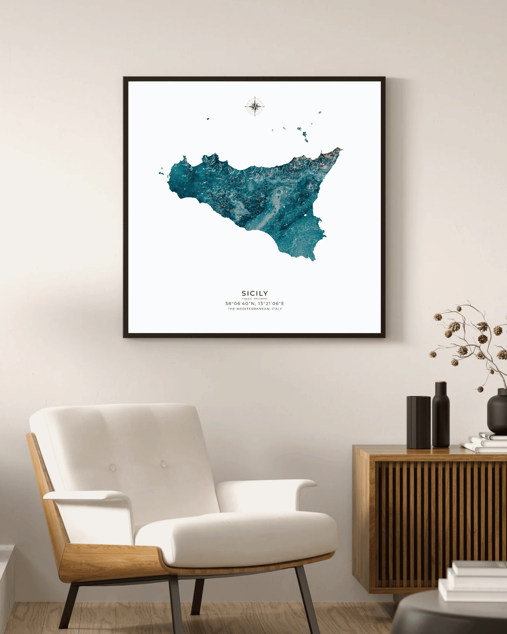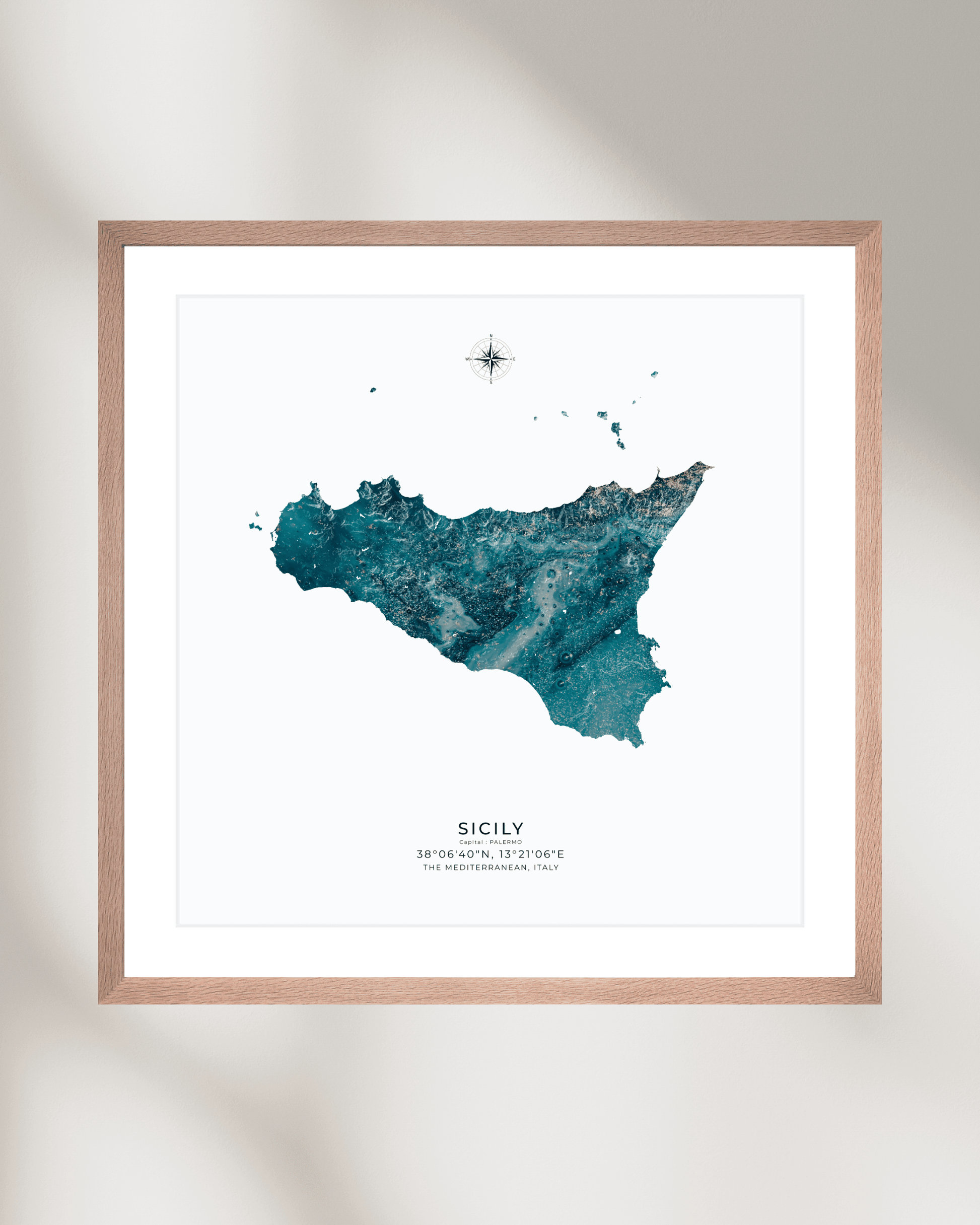 Expertly illustrated to reveal the island’s varied terrain, each elevation is subtly rendered to evoke depth, movement, and character. Printed on museum-grade archival paper, the map delivers crisp definition and refined texture — ideal for display in modern interiors, travel-inspired spaces, or as a meaningful gift for lovers of Sicily.