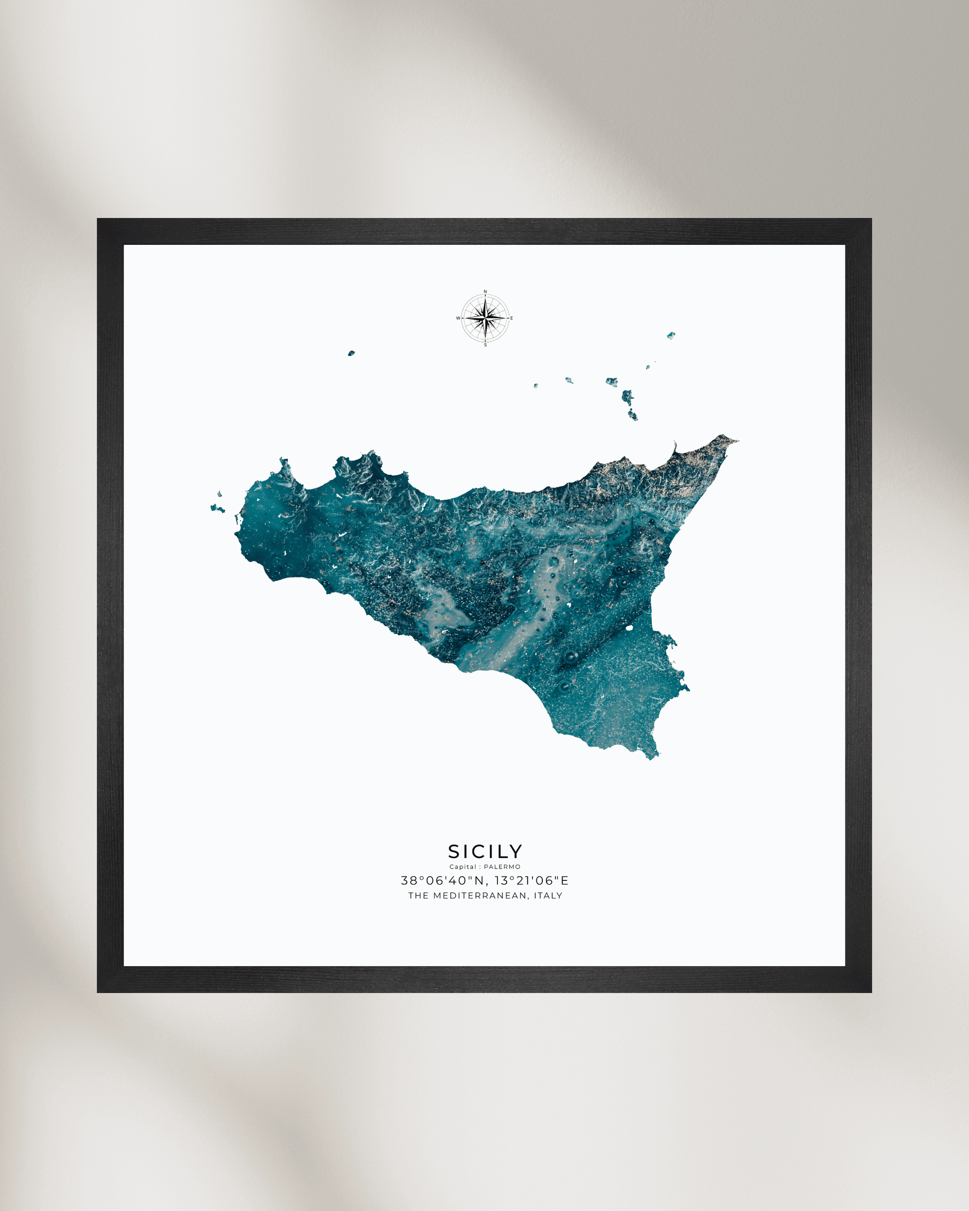Bold, dramatic, and unmistakably Mediterranean — this fine art contour map of Sicily captures the island’s rugged beauty in striking detail. From the sweeping curves of its sun-drenched coastline to the commanding presence of Mount Etna at its core, this topographic print is both a work of art and a tribute to the natural drama of Italy’s largest island.