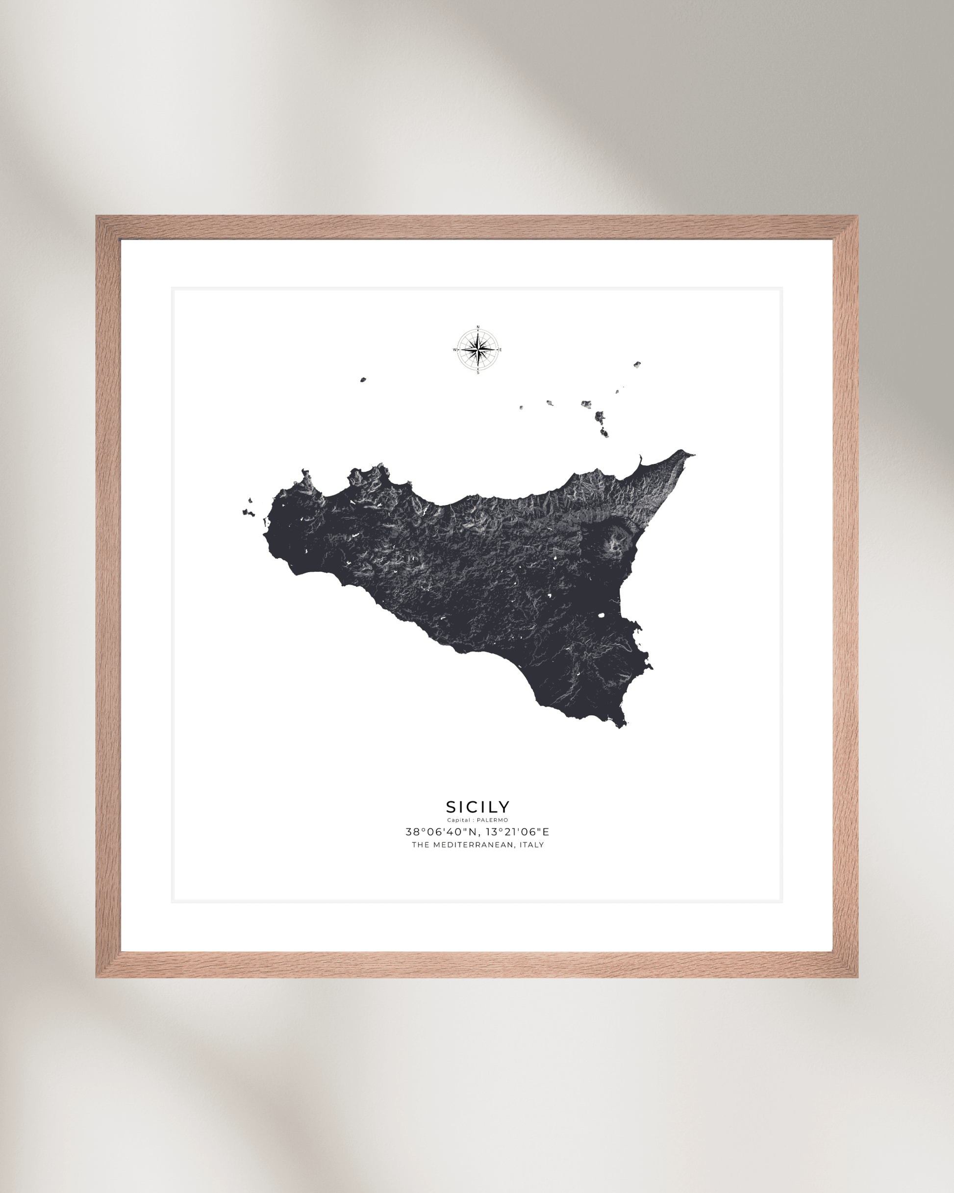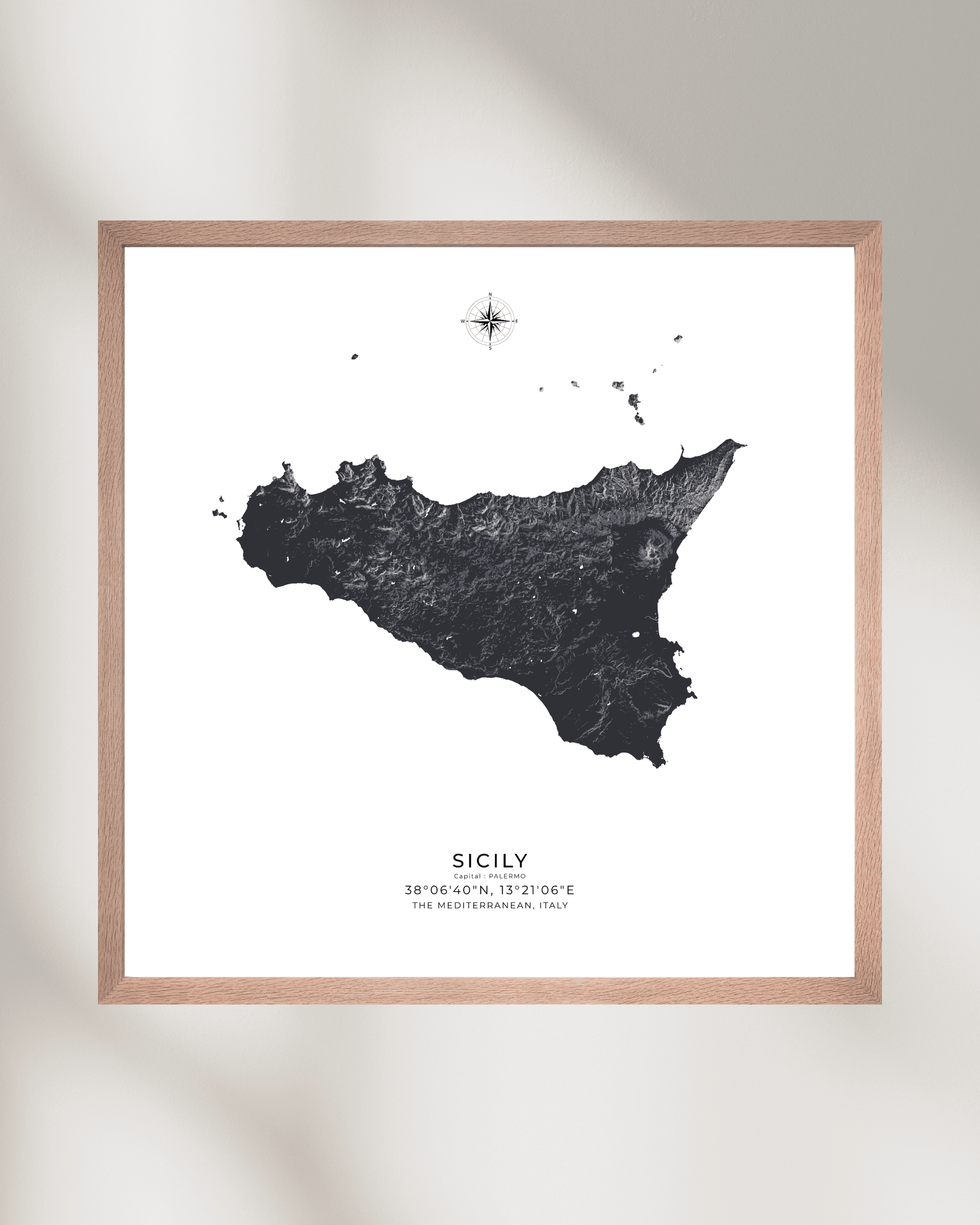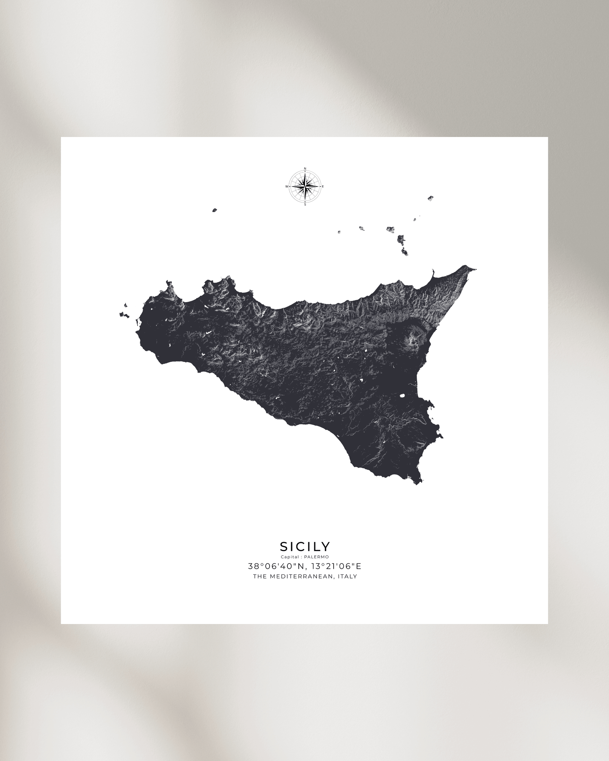 Expertly illustrated to reveal the island’s varied terrain, each elevation is subtly rendered to evoke depth, movement, and character. Printed on museum-grade archival paper, the map delivers crisp definition and refined texture — ideal for display in modern interiors, travel-inspired spaces, or as a meaningful gift for lovers of Sicily.