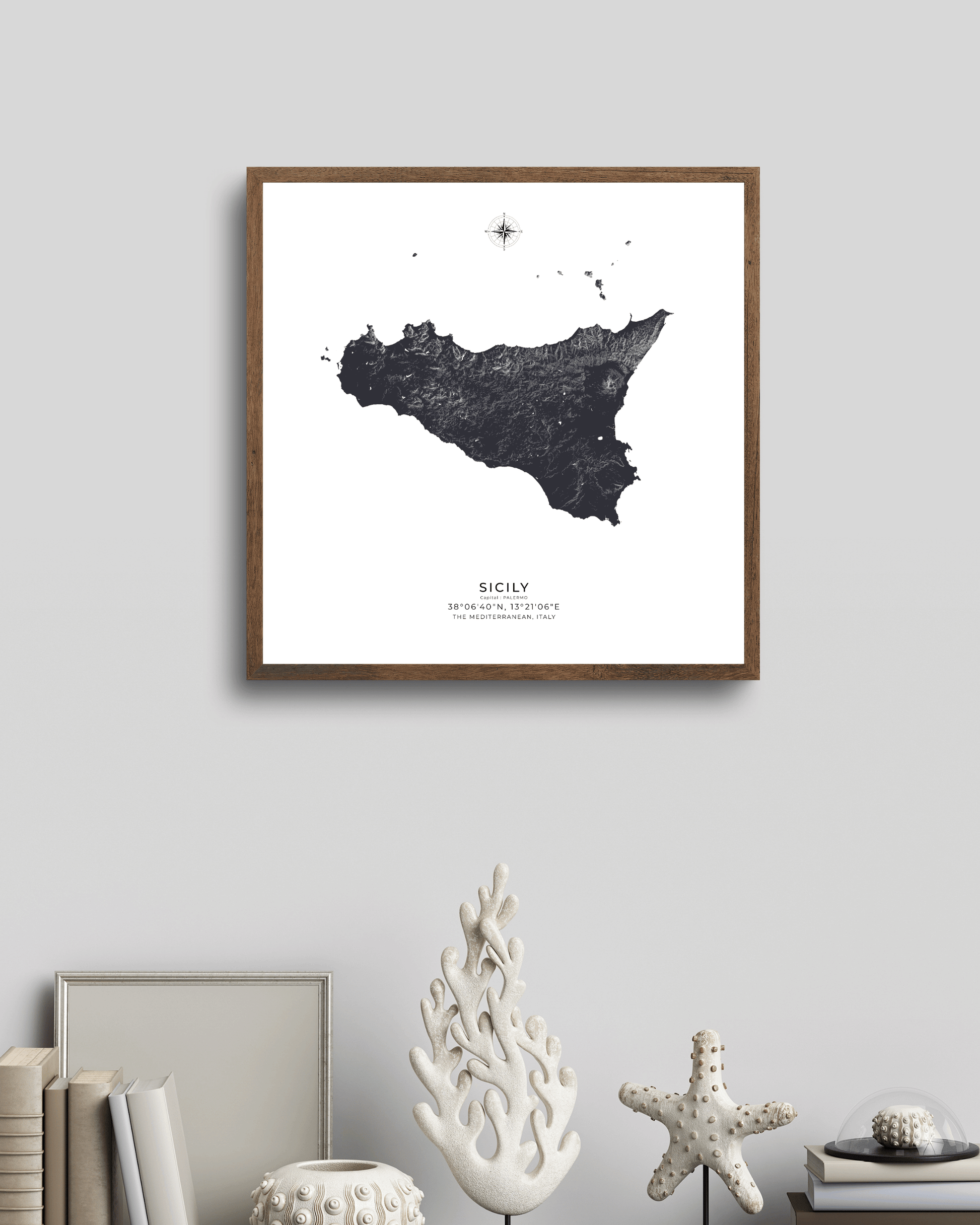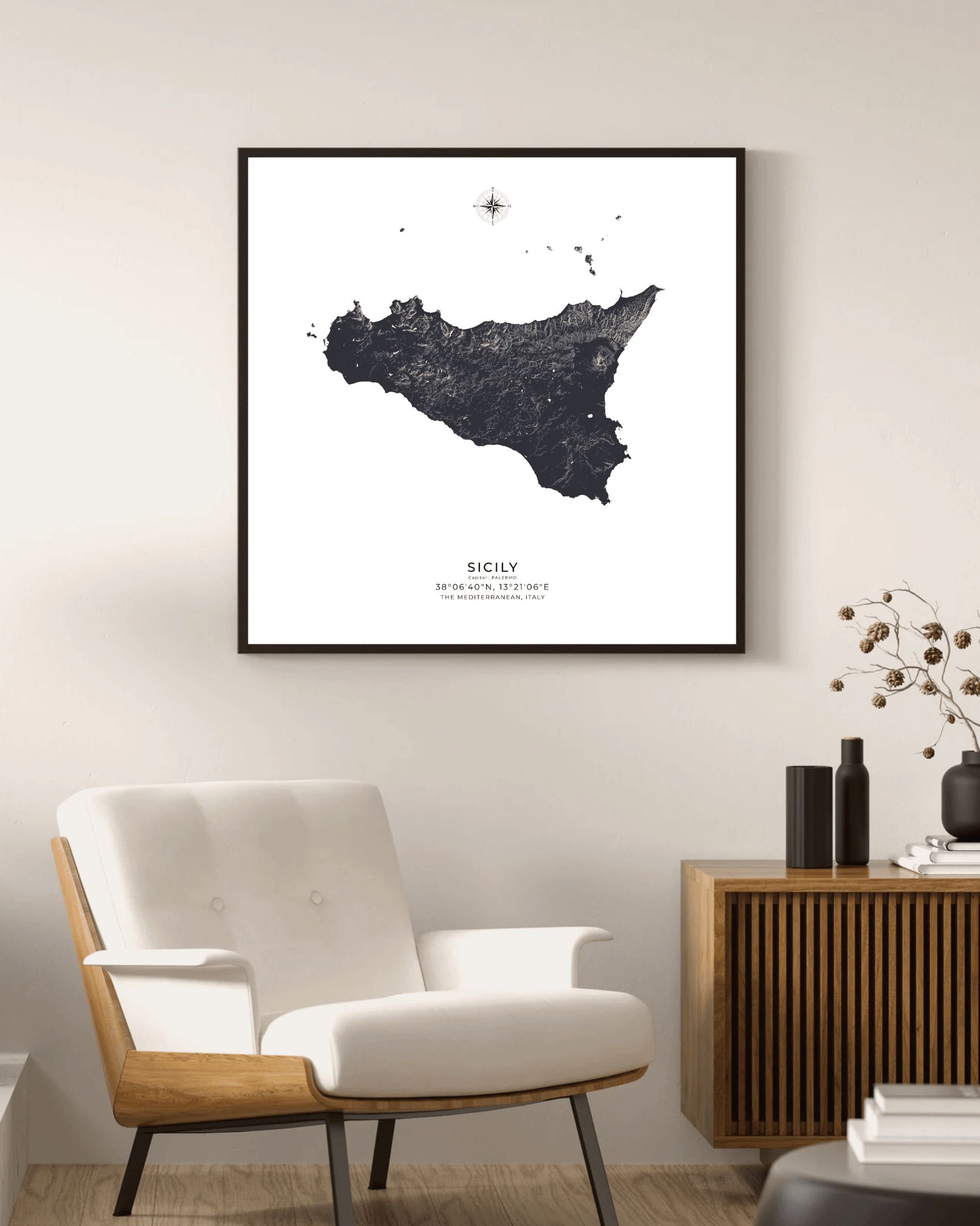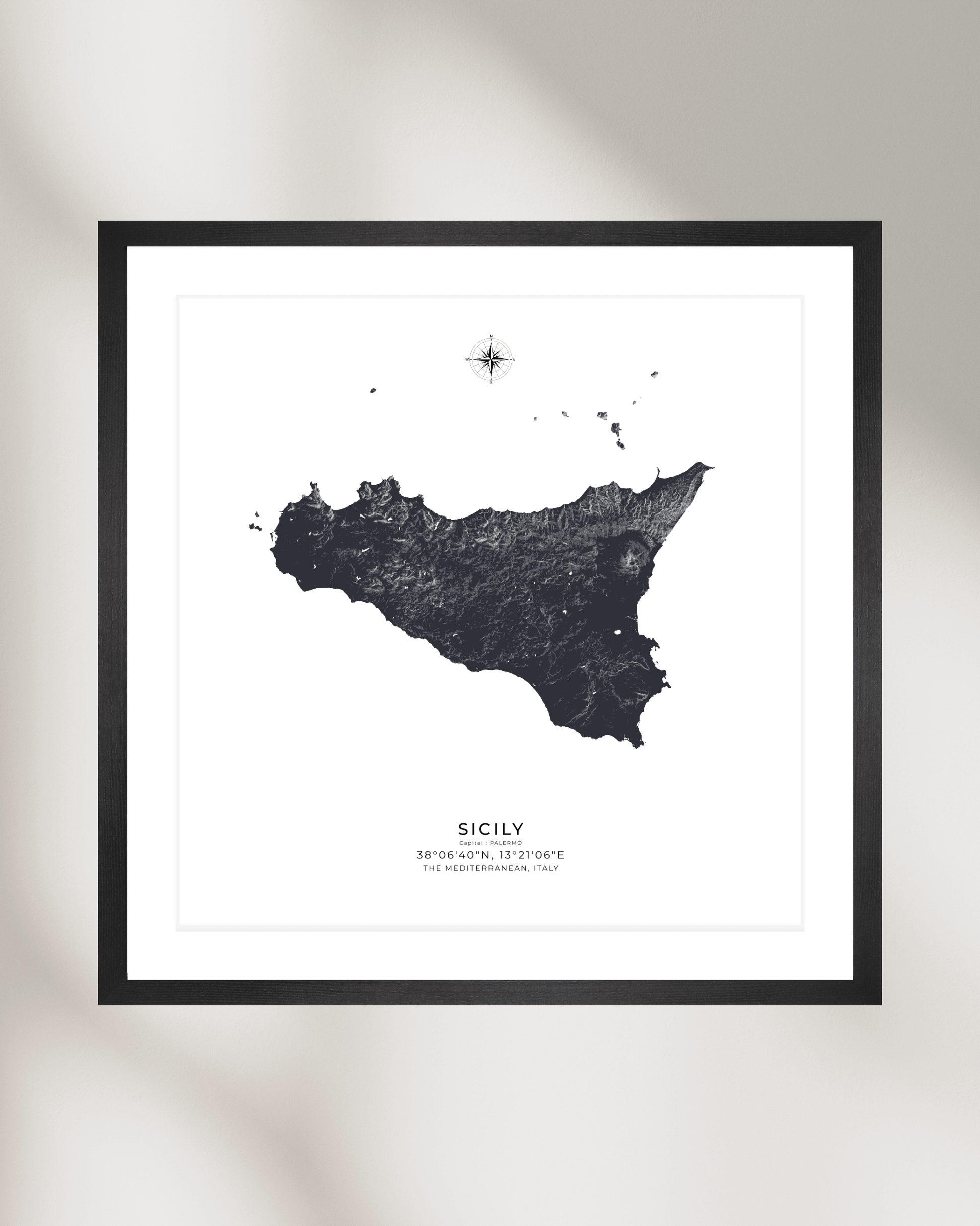 Expertly illustrated to reveal the island’s varied terrain, each elevation is subtly rendered to evoke depth, movement, and character. Printed on museum-grade archival paper, the map delivers crisp definition and refined texture — ideal for display in modern interiors, travel-inspired spaces, or as a meaningful gift for lovers of Sicily.