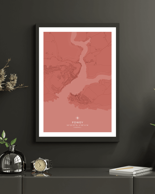 Coastal Map of Fowey - Muted CoralRegular price From $43.00 USDRegular priceUnit price per-