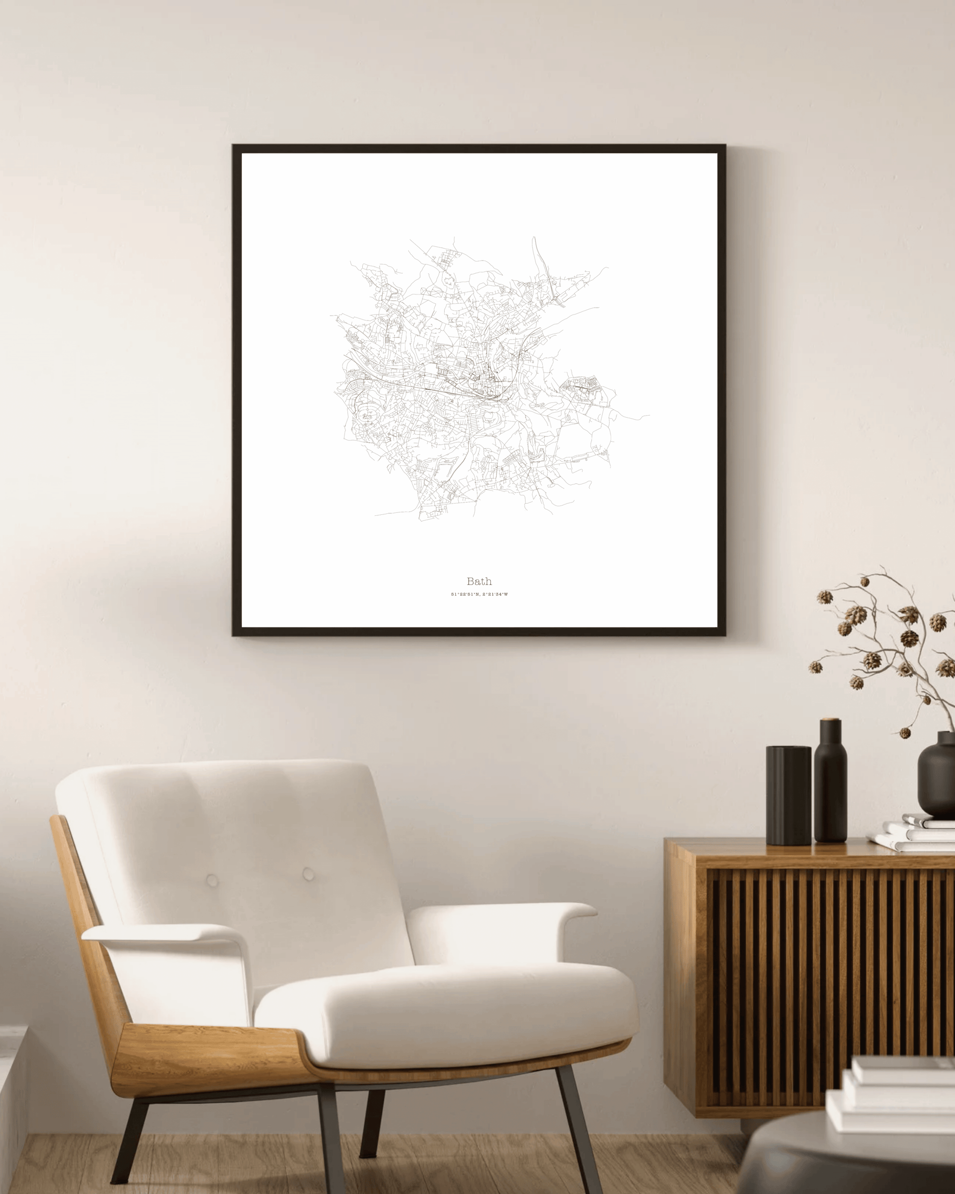 Based on accurate data from OpenStreetMaps, we've focused on roads, paths and railways to give a unique perspective, and removed linear boundaries to allow the drawing to flow.