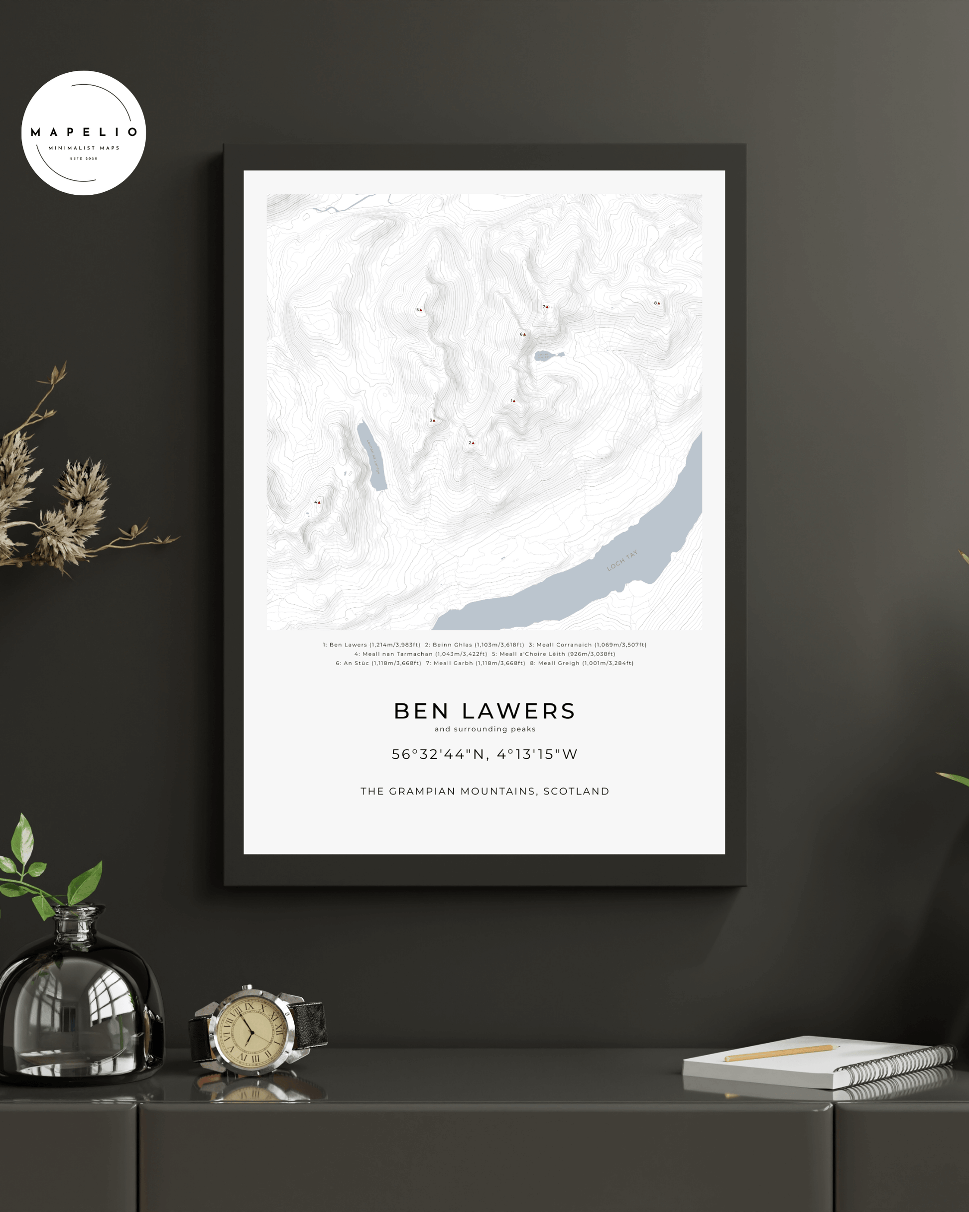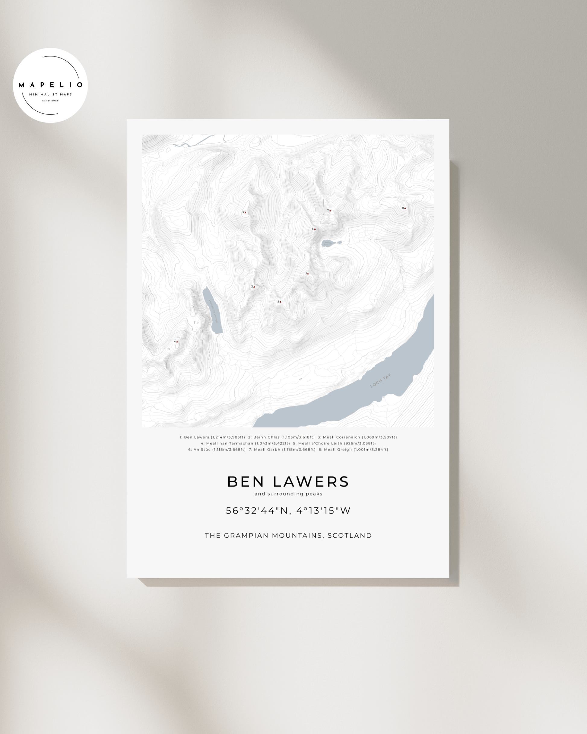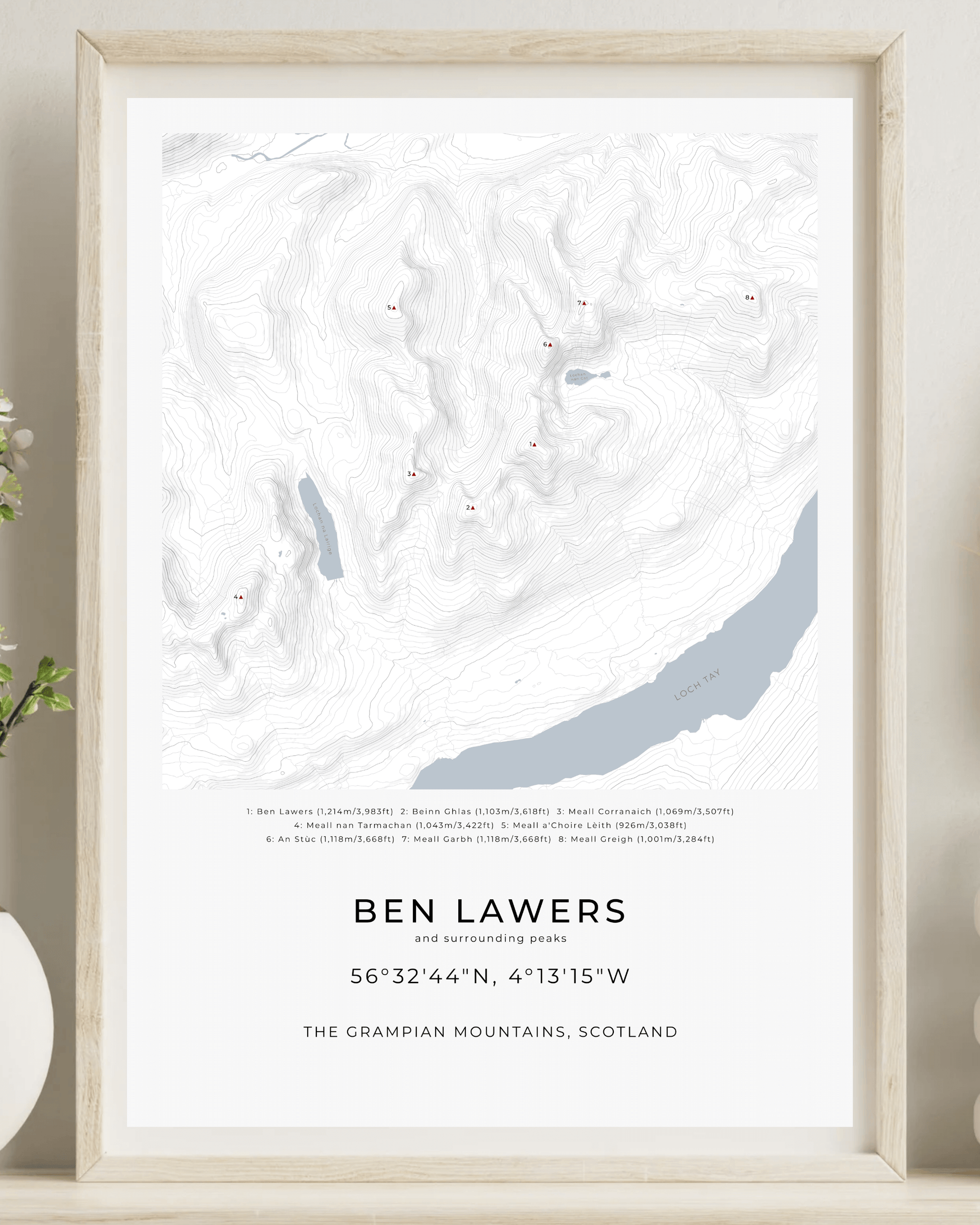 Ben Lawers & Surrounding peaks - Contour Map Print