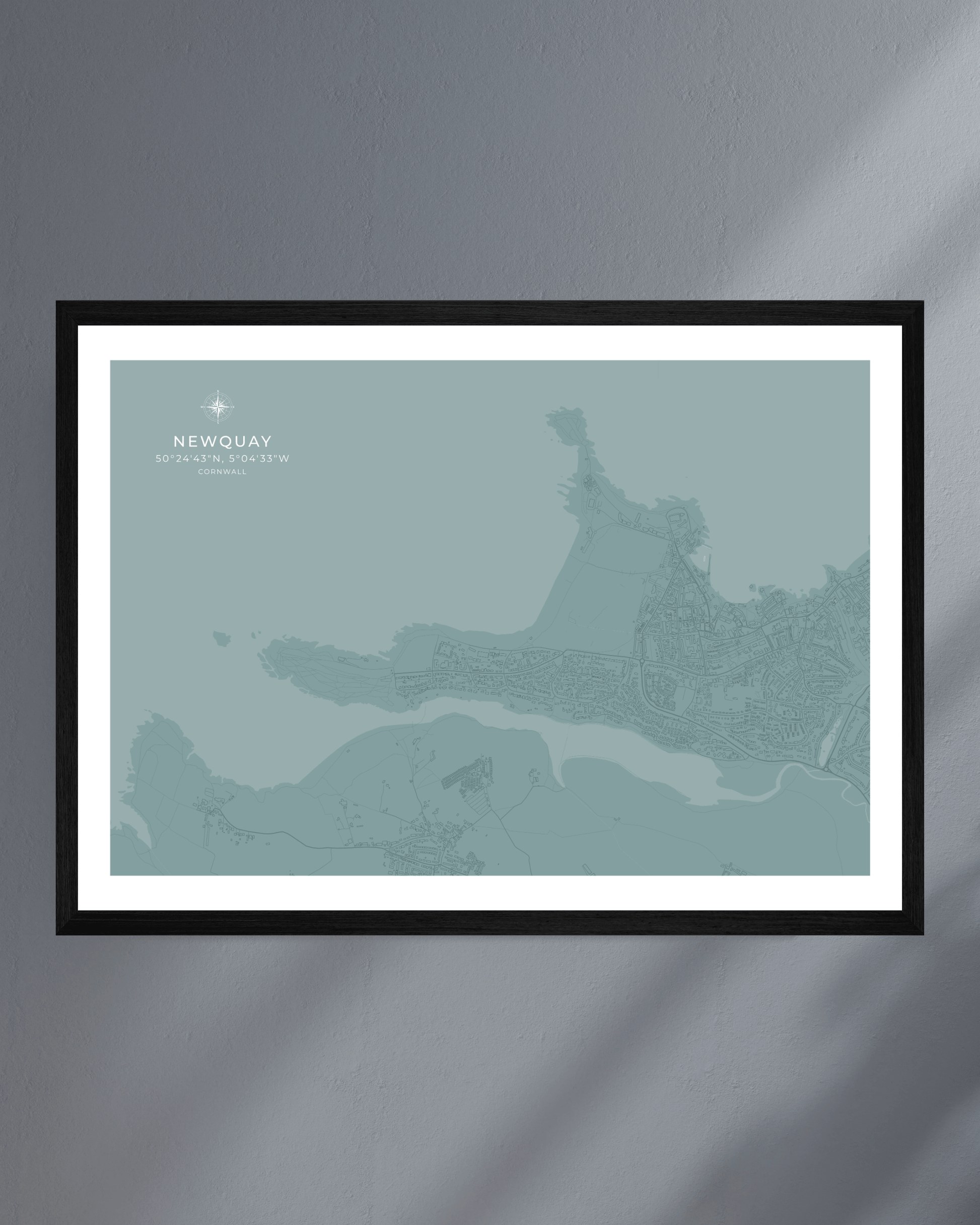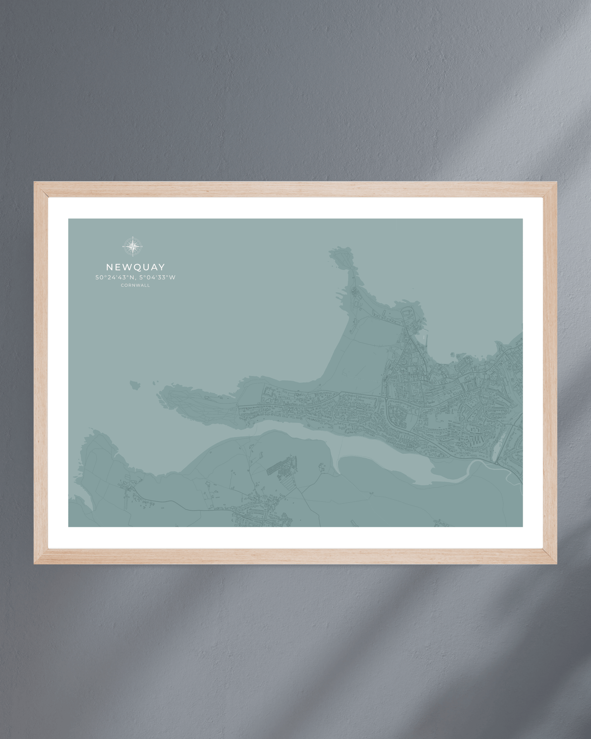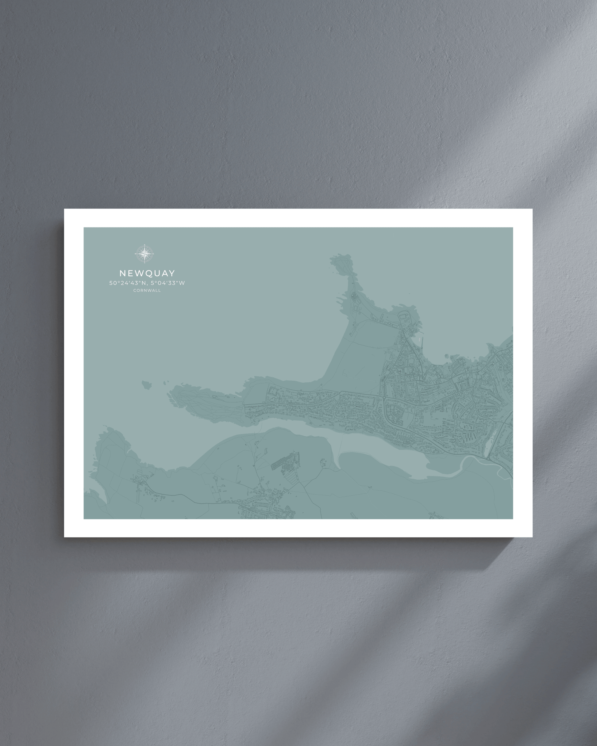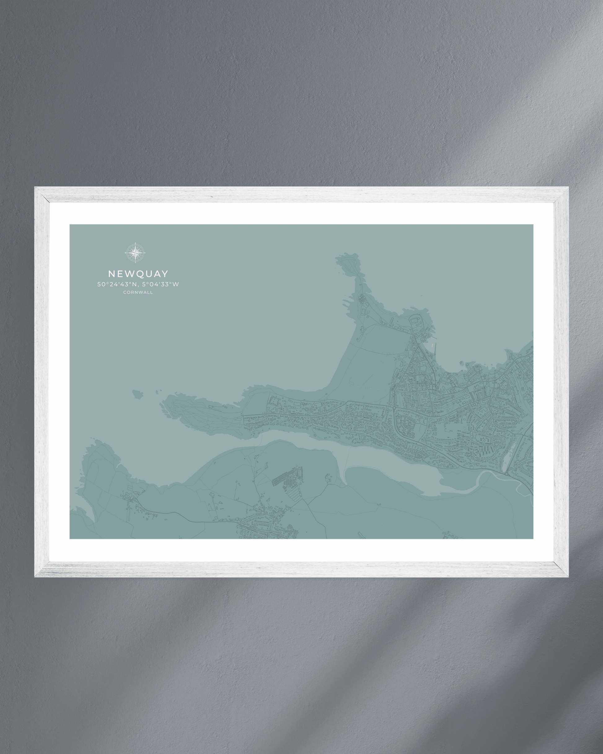 From the curve of Fistral Beach to the headlands, inlets, and harbour structures, the map captures the interplay between Newquay’s urban layout and its natural setting.