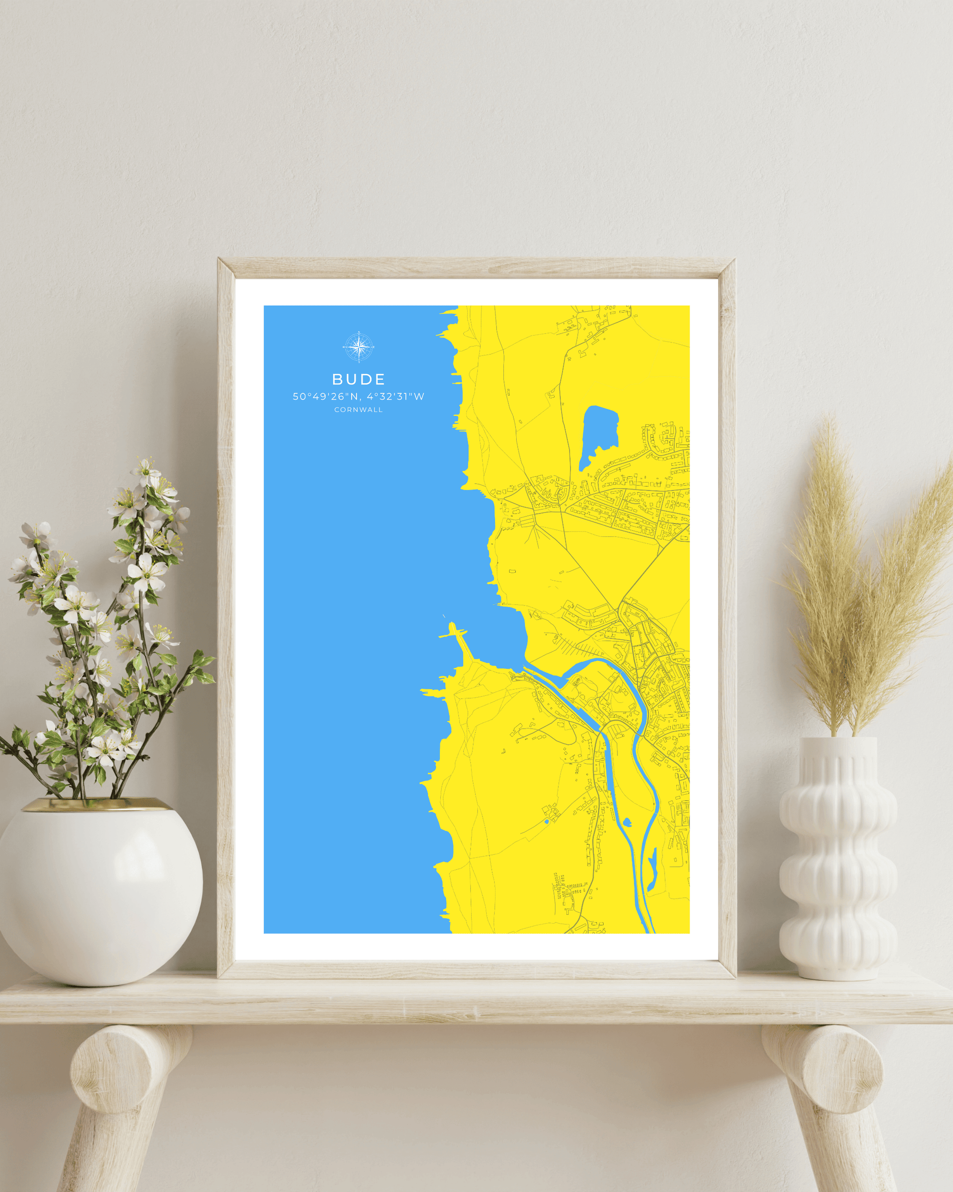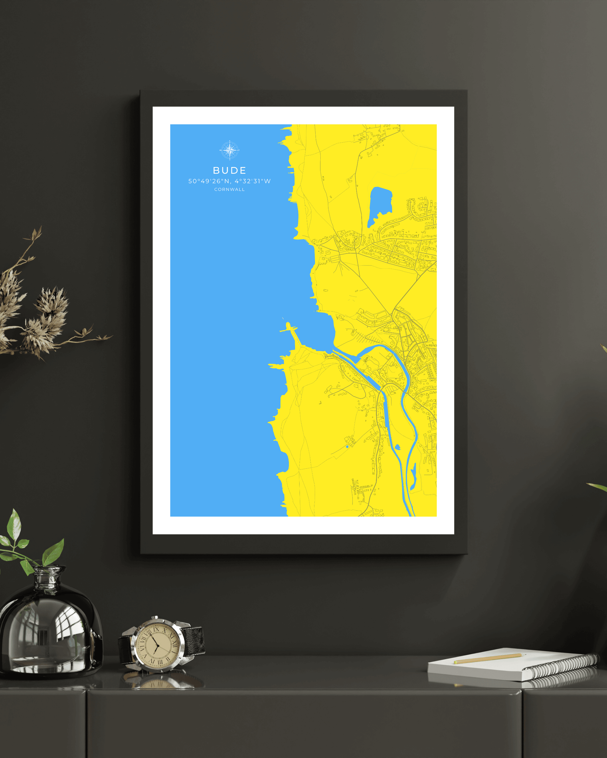 Celebrate the rugged beauty and seaside charm of North Cornwall with this finely detailed coastal map of Bude.