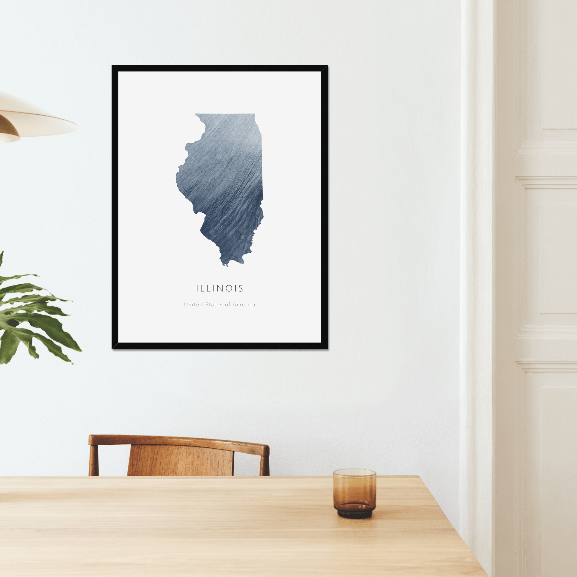 Our framed and mounted state map of Illinois combines the finest quality materials with the highest levels of craftsmanship. All our frames are carefully handmade by Guild recognised framers and milled with simple, clean lines to give a smooth, satin finish.