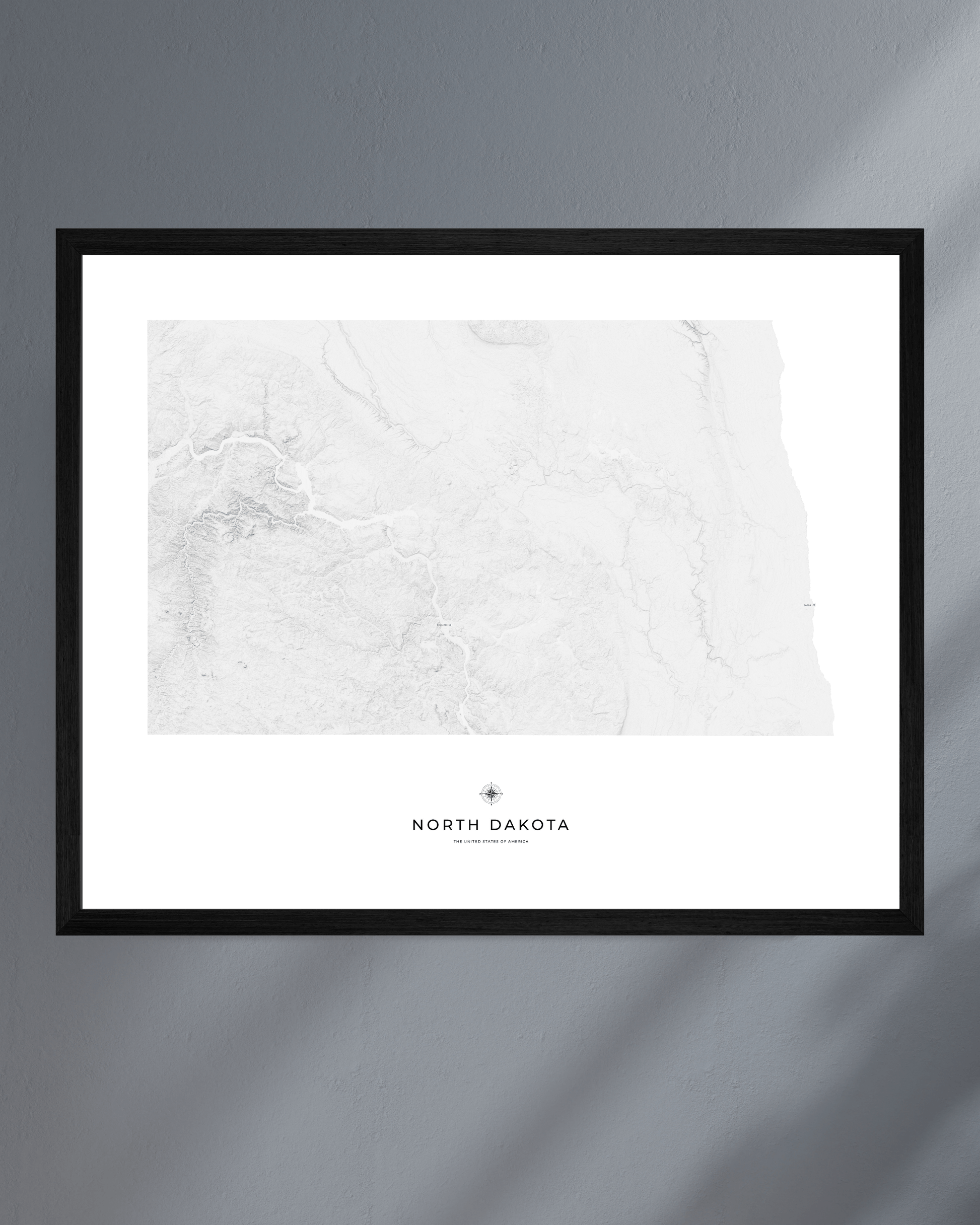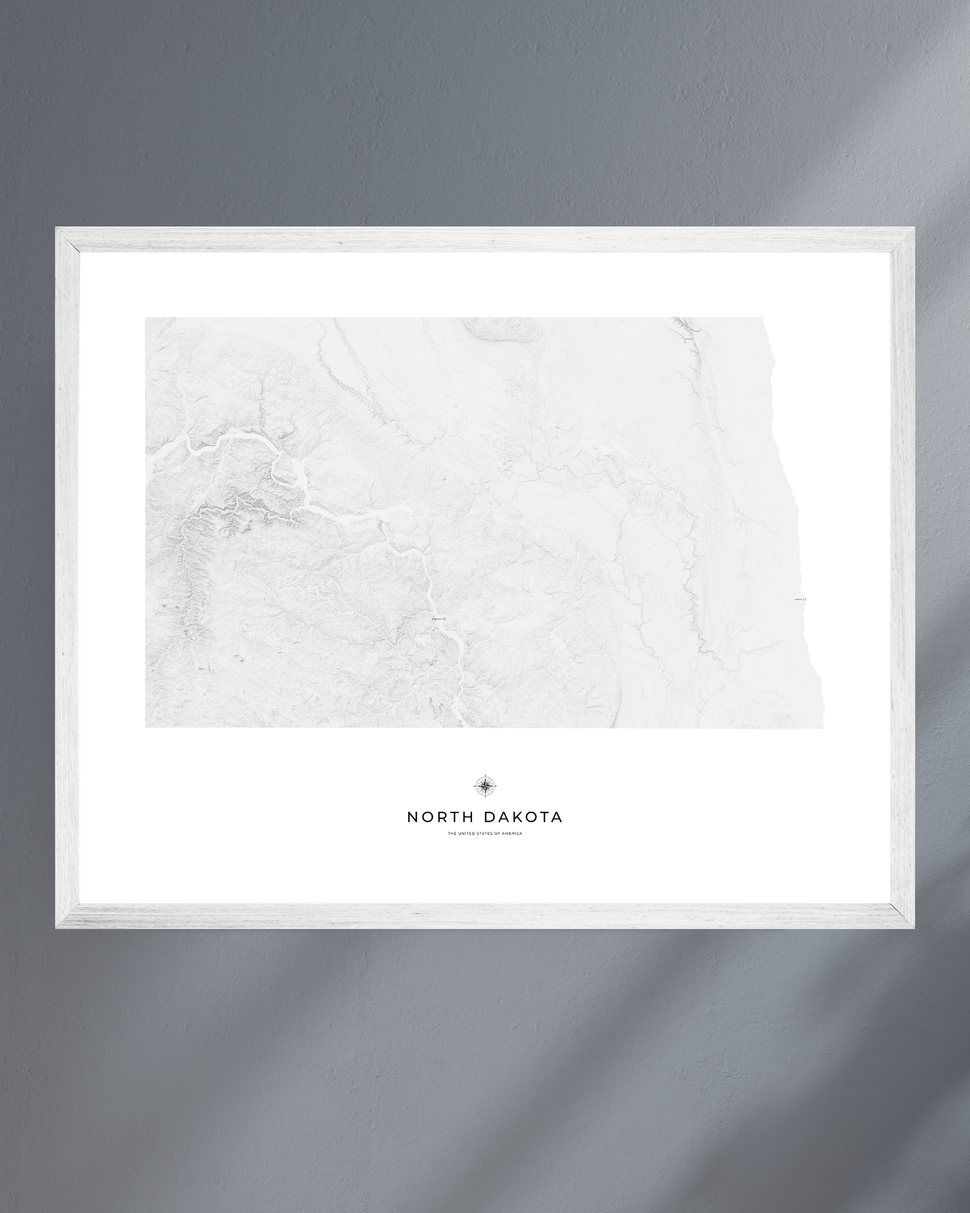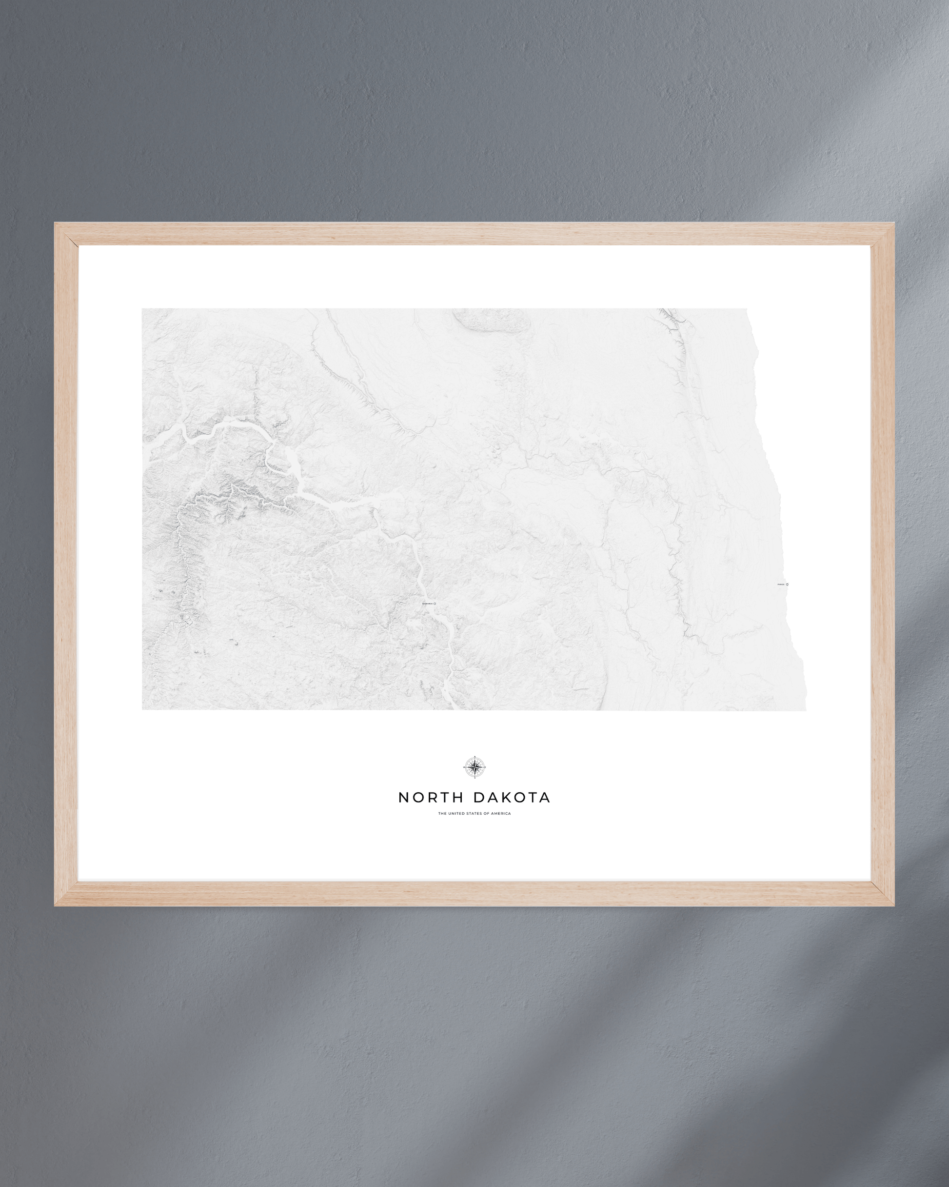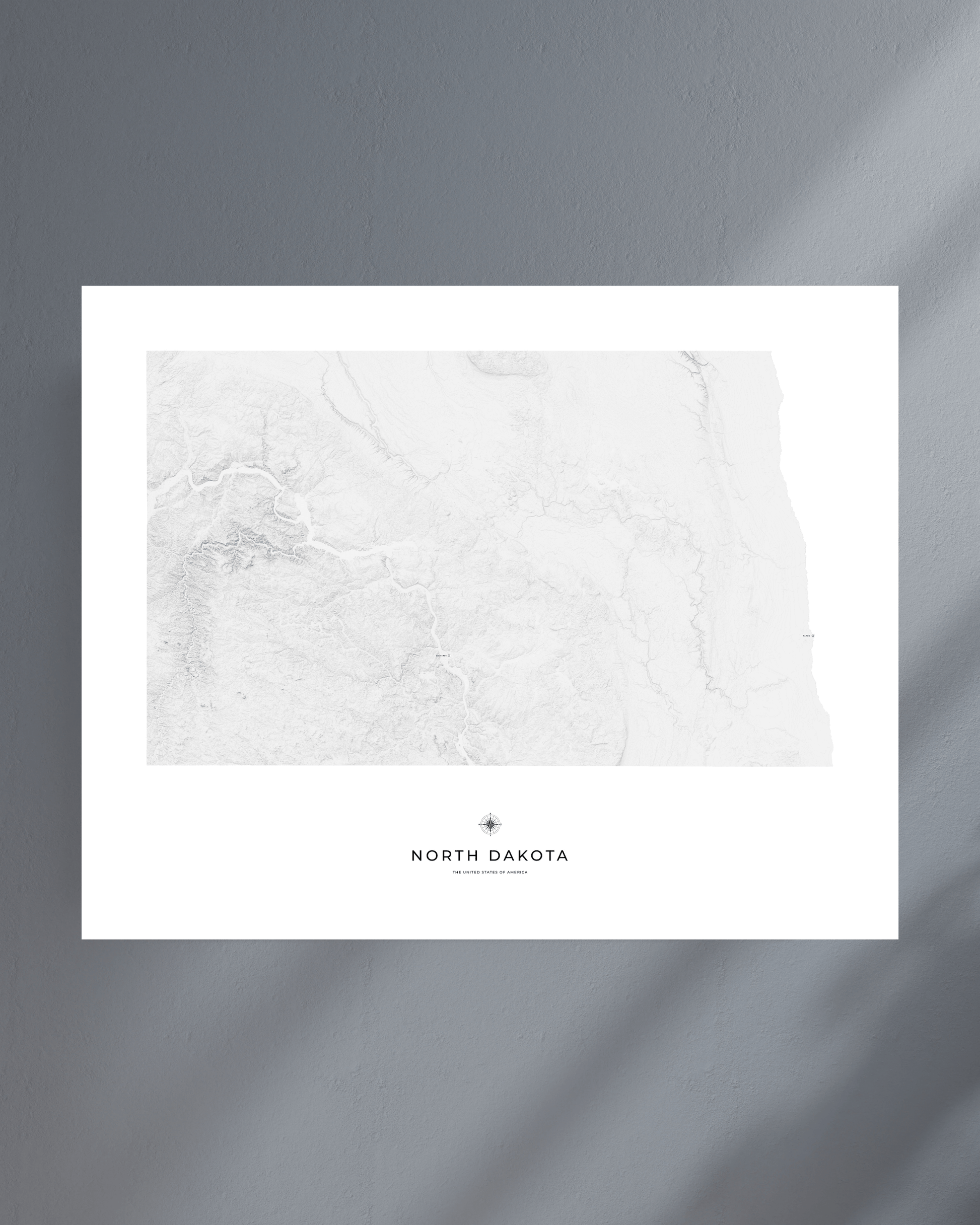 The rugged beauty of North Dakota captured in stunning topographic detail, with the state capital Bismarck discreetly marked.