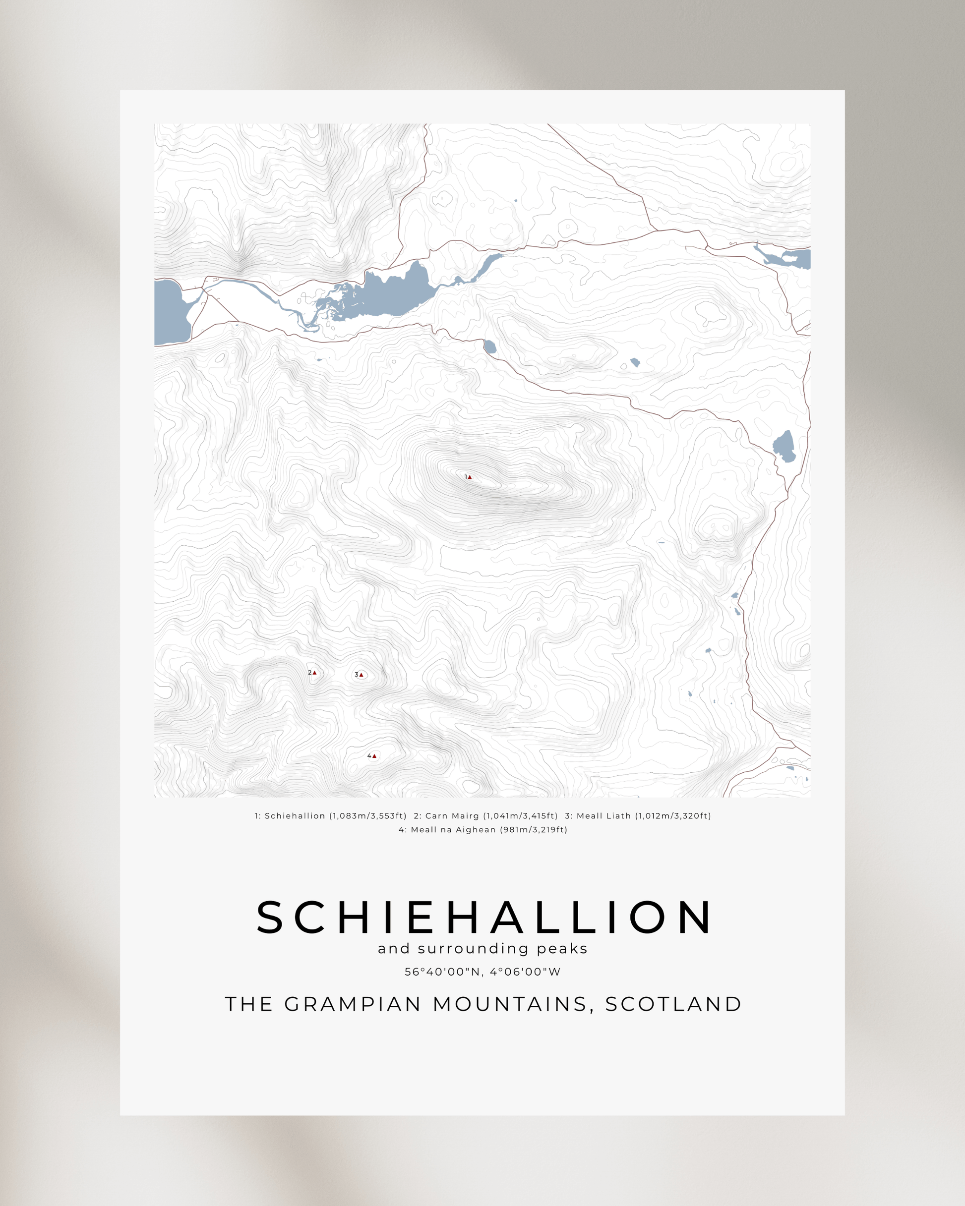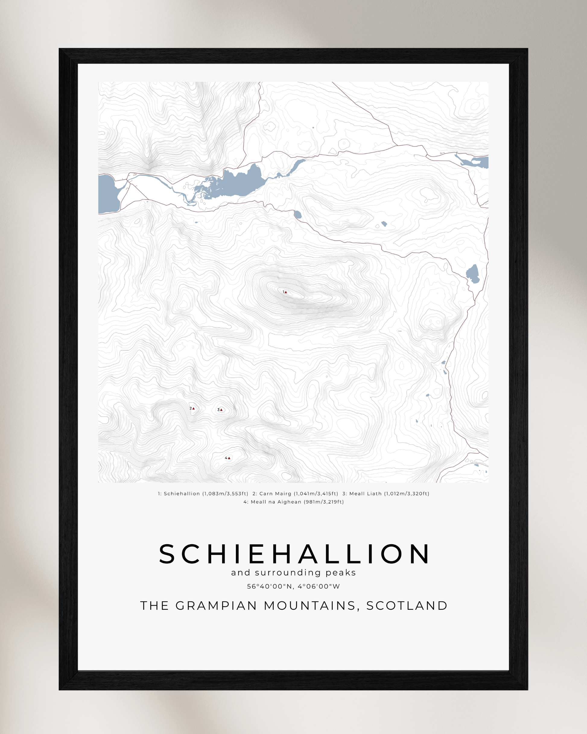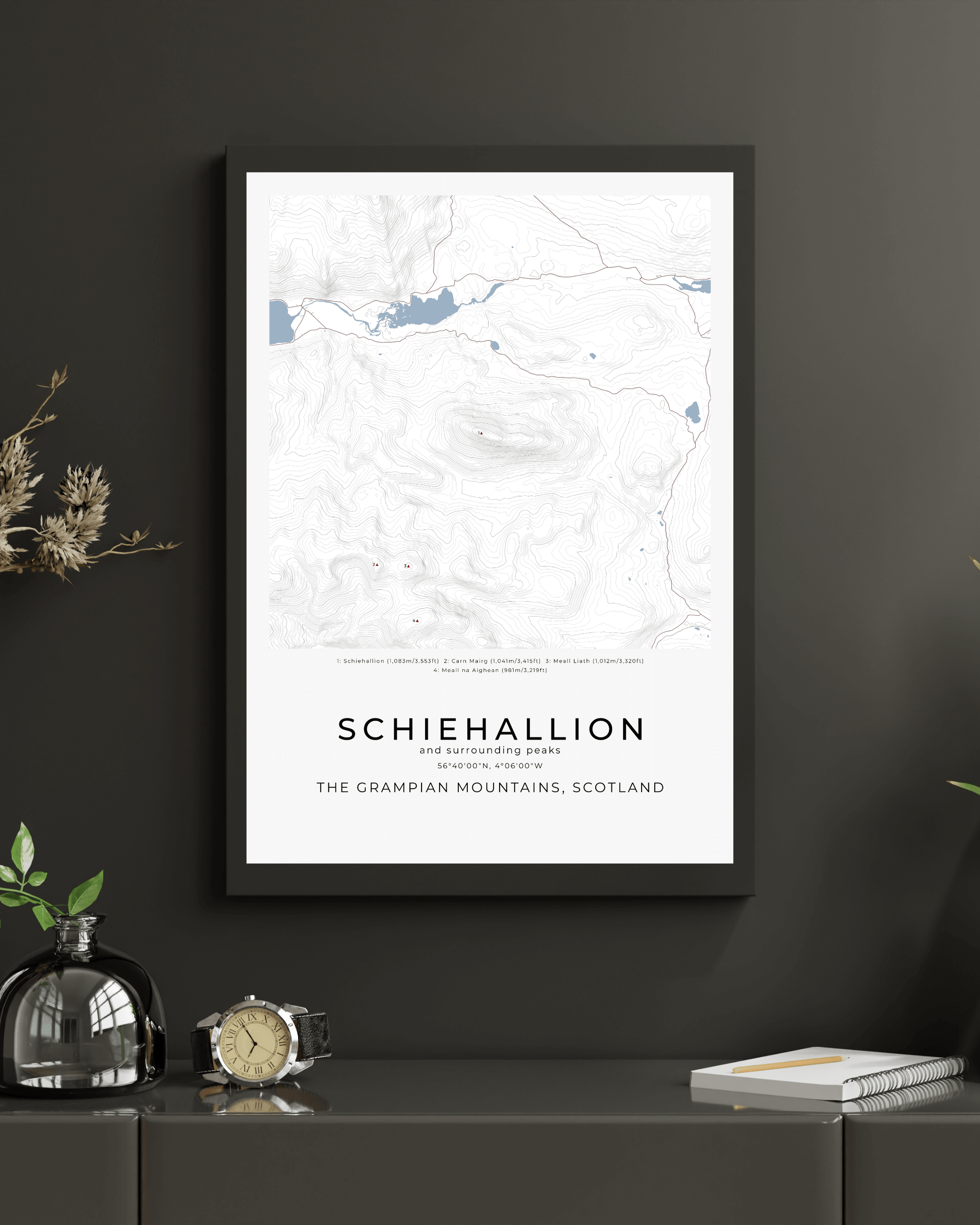 Schiehallion & Surrounding peaks - Contour Map Print Poster