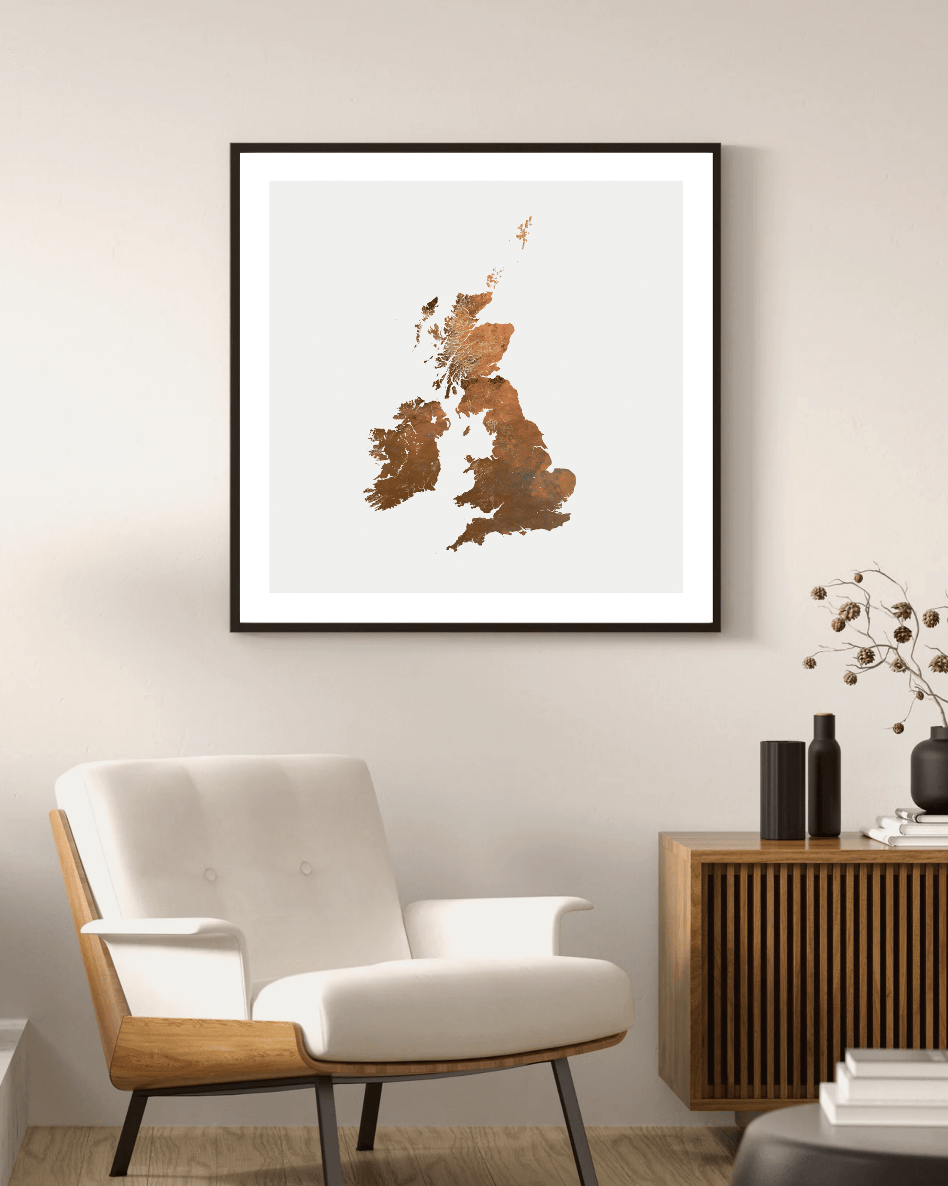 Exceptionally detailed, this map of The British Isles outlines the topography, complete with all major lakes, lochs, loughs and waterways.